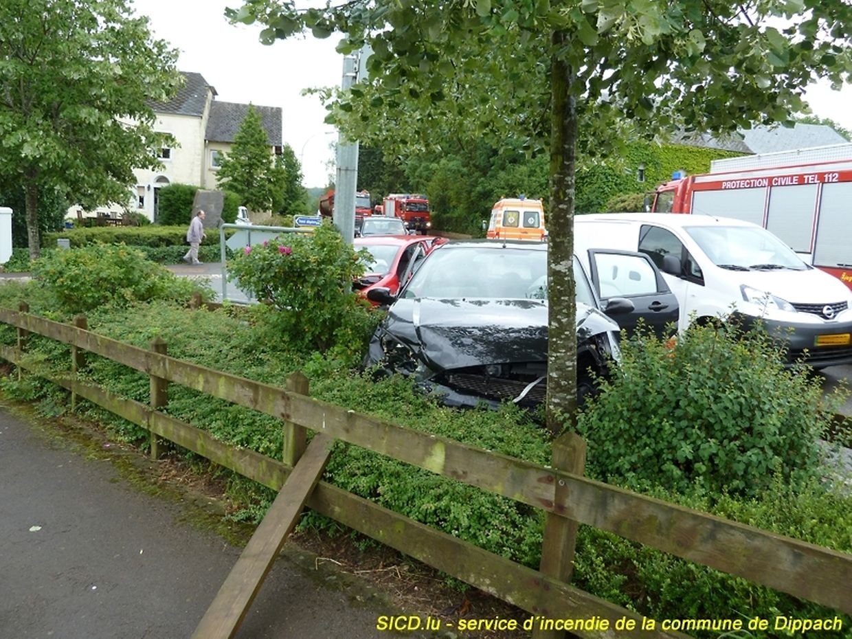 Den moien (21.6.) um 8:15 hr gouf et en Autosaccident mat zwee Gefierer ob der Kraizung zu Heiweng. 2 Persounen goufen hei liicht blesseiert an Spidol gefouert. Un den Autoen ass heichen Materialschued entstaan. Den Verlaaf vum Accident ass nach net kloer. Ob der Plaatz waren Pompjeeen aus der Gemeng Dippech mat 12 Mann, den Sauvetage Mamer an Peiteng souwei Ambulanz Mamer an Peiteng.