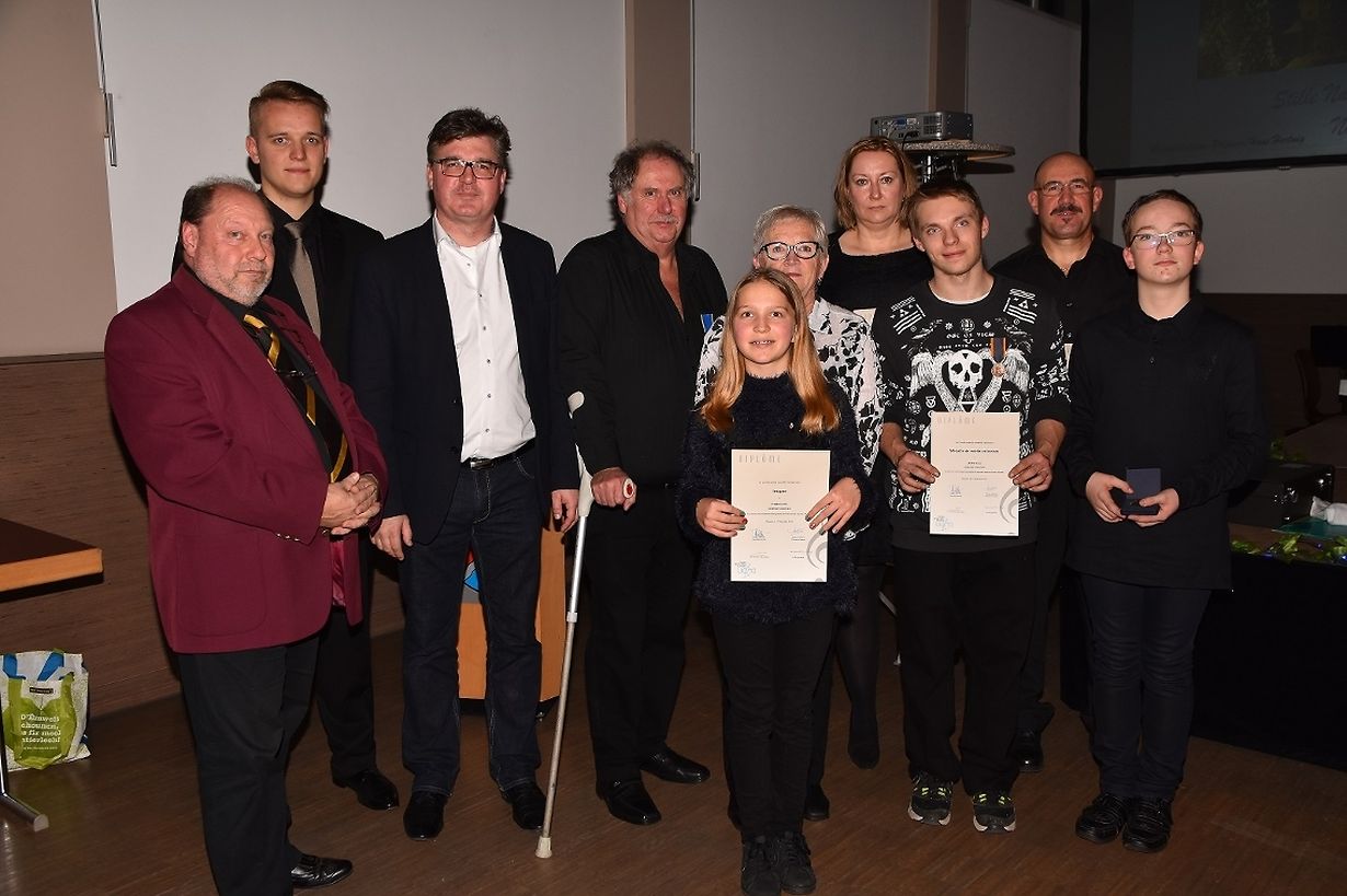 Im Verlauf des “Chrëschtconcert“ der Harmonie Hobscheid wurden verdienstvolle Mitglieder mit UGDA-Medaillen ausgezeichnet. Der Abend wurde musikalisch eingeleitet von der Jugendgruppe unter der Leitung von Ben Spartz. Danach wusste die Harmonie das Publikum zu begeistern mit Melodien von Ted Huggens, Jacob de Haan und stimmungsvollen Weihnachtsliedern. Im festlich geschmückten Saal verlieh Frau Arlette Wagner-Heitz als Vertreterin der UGDA die Auszeichnungen. Ein “Insigne de Mérite“ ging an BOF-HETTO Mireille sowie an CORSI Kim, je eine “Médaille de Mérite en Bronze" an HAMM Ben und LANG Sven, die “Médaille de Mérite en Vermeil“ an MERSCH Raymond und die “Médaille en Argent Grand-Duc Adolphe“ an DE MICHELE Franco. Geehrt wurde auch der 13jährige SCHMITZ Chris für seine Goldmedaille bei Gelegenheit des Concours Européen pour Jeunes Solistes.