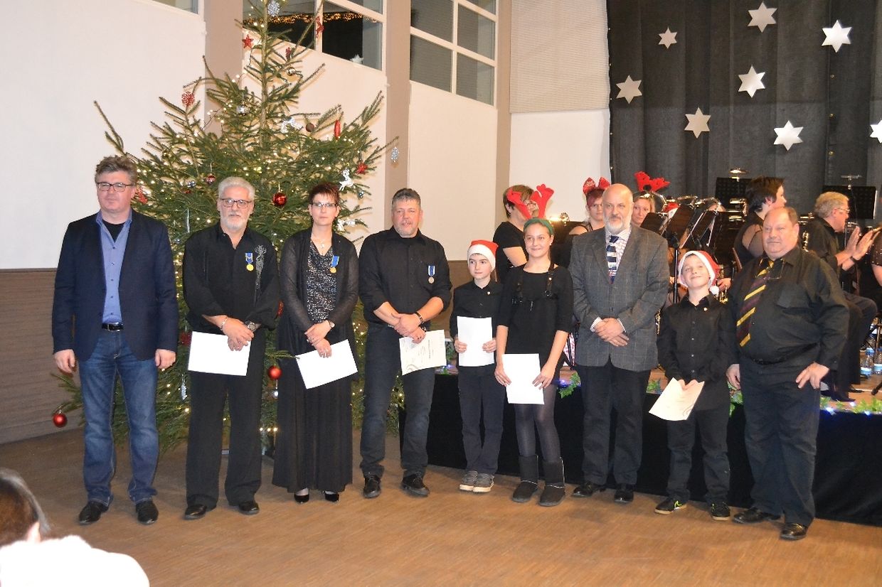 Im Verlauf des “Chrëschtconcert“ der Harmonie Hobscheid wurden verdienstvolle Mitglieder mit UGDA-Medaillen ausgezeichnet. Nach einem stimmungsvollen Weihnachtskonzert unter der Leitung von François Godard, im festlich geschmückten Saal und einem zahlreichen Publikum verlieh Herr Robert Köller als Vertreter der UGDA die Auszeichnungen. Ein “Insigne de Mérite“ ging an Corsi Liz, Le Clerc Luca sowie an Wagener Nicolas, eine Silbermedaille an Hames Alain, die “Médaille de Mérite en Vermeille“ an Wagener Sonia und und die “Médaille de Mérite en Vermeille avec Palmettes“ an Lalli Antonello.