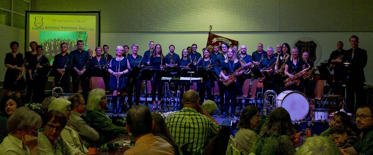 Den Highlight vum Gebuertsdagsconcert war de Marsch “Duerch Bësch an Dall“, komponéiert fir dës Feier vum lëtzebuerger Komponist Yvan Boumans. Flott duerch de Programm gefouert huet d’Nicole Wagner mat villen interessanten Anekdoten aus 100 Joer Harmonie Habscht, ënnermoolt op der grousser Leinwand mat stëmmungsvolle Fotoen aus aler Zäit.
