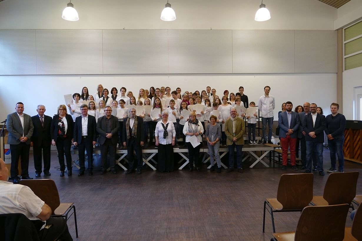Kürzlich fand in Hobscheid die alljährliche Audition der Musikschüler statt. Musik- und Gesangschüler aller Altersklassen wussten die geladenen Gäste wieder mit ihrem Können zu überzeugen. Die Audition ist jedes Mal mit der Diplomüberreichung der verschiedenen Musikkursen aus dem vorherigen Jahr verbunden. Dementsprechend konnten 84 Musik- und Gesangbegeisterte ihr Diplom des Jahres 2017/2018 entgegennehmen, davon 17 für Notenlehre (Solfège), 36 für individuelle Instrumentenkurse, 22 für Gesangkurse für Kinder und 9 für Gesangkurse für Erwachsene. Robert Weyland, Vertreter der Gemeinde Habscht in der „Regionalen Musikschule des Westens“, zeigte sich erneut erfreut und dankbar über den Erfolg der Musikkurse in der Gemeinde Habscht. Der Direktor der Musikschule der UGDA, Paul Scholer, und auch Bürgermeister Serge Hoffmann lobten und bedankten sich bei Schülern, Lehrern und auch den Eltern, die alle zusammen dazu beitragen, dass der Musikunterricht in der Gemeinde weiterhin so großen Anklang findet. Dies komme, so sei zu hoffen, auch den 3 Musik- und Gesangvereinen der Gemeinde zugute, insofern dass der eine oder andere Schüler den Weg in einen dieser Vereine einschlägt. Robert Weyland, Paul Scholer und Serge Hoffmann überreichten die Diplome und gratulierten den Schülern für das bestandene Jahr 2017/2018 und wünschten weiterhin viel Erfolg für die kommenden Jahre.