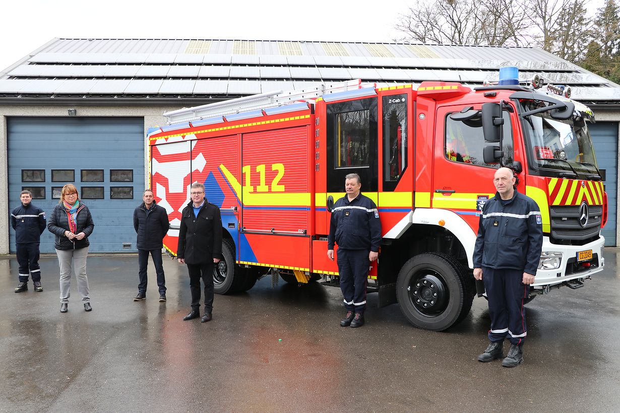Seit einigen Tagen verfügt das CGDIS-Einsatzzentrum Hobscheid über ein neues Löschfahrzeug des Typs LF2. Vor Kurzem stattete der Schöffenrat der Gemeinde Habscht dem in Eischen basierten CIS Hobscheid einen Besuch ab und ließ sich das neue Löschfahrzeug von Zenterchef Tom Geditz und dem beigeordneten Zenterchef Tom Heinisch erklären, dies in Anwesenheit von Jean Stein, dem beigeordneten Chef de zone Centre. Bürgermeister Serge Hoffmann betonte bei dieser Gelegenheit die Wichtigkeit des neuen Einsatzfahrzeugs, insbesondere im Hinblick auf das aktuell im Bau befindliche CIPA in Eischen.