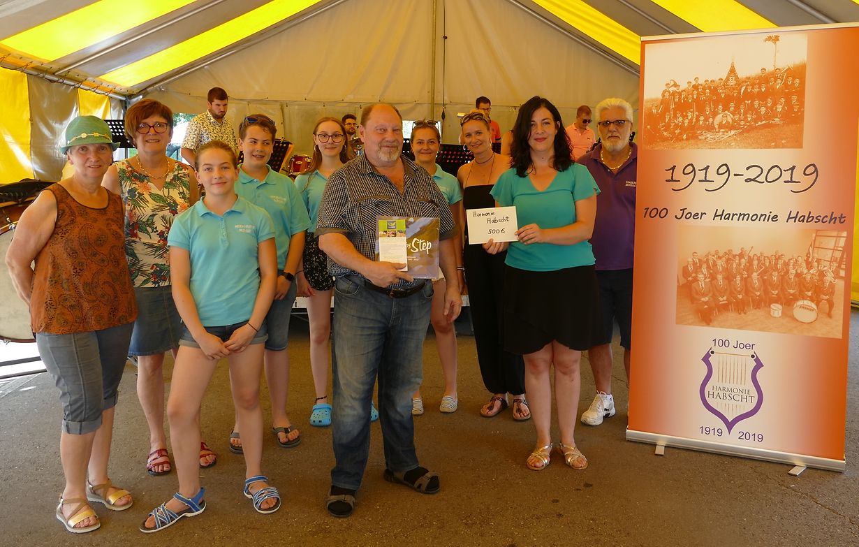 Hobscheid Scheckiwwerreeschung vun der Harmonie Habscht Harmonie de Hobscheid a.s.b.l. Veröffentlicht am Dienstag, 23. Juli 2019 um 09:26 Hobscheid, Luxemburg Am Kader vun hirem traditionnelle Summerfest hunn déi Responsabel vun der Harmonie Habscht der Ligue HMC vun der Cap e Chèque vu 500 Euro iwerreecht zu Gonschte vum Atelier protégé DAFODONIC. Unpassenden Inhalt angeben Weitere Neuigkeiten von Harmonie de Hobscheid a.s.b.l. > Gala Concert vun der Harmonie Habscht am Joer vun hirem Centenaire 31.05.19 Hobscheid Summerfest 2018 zu Habscht 18.07.18 Hobscheid HARMONIE HABSCHT GOES FILM 20.05.17 Hobscheid