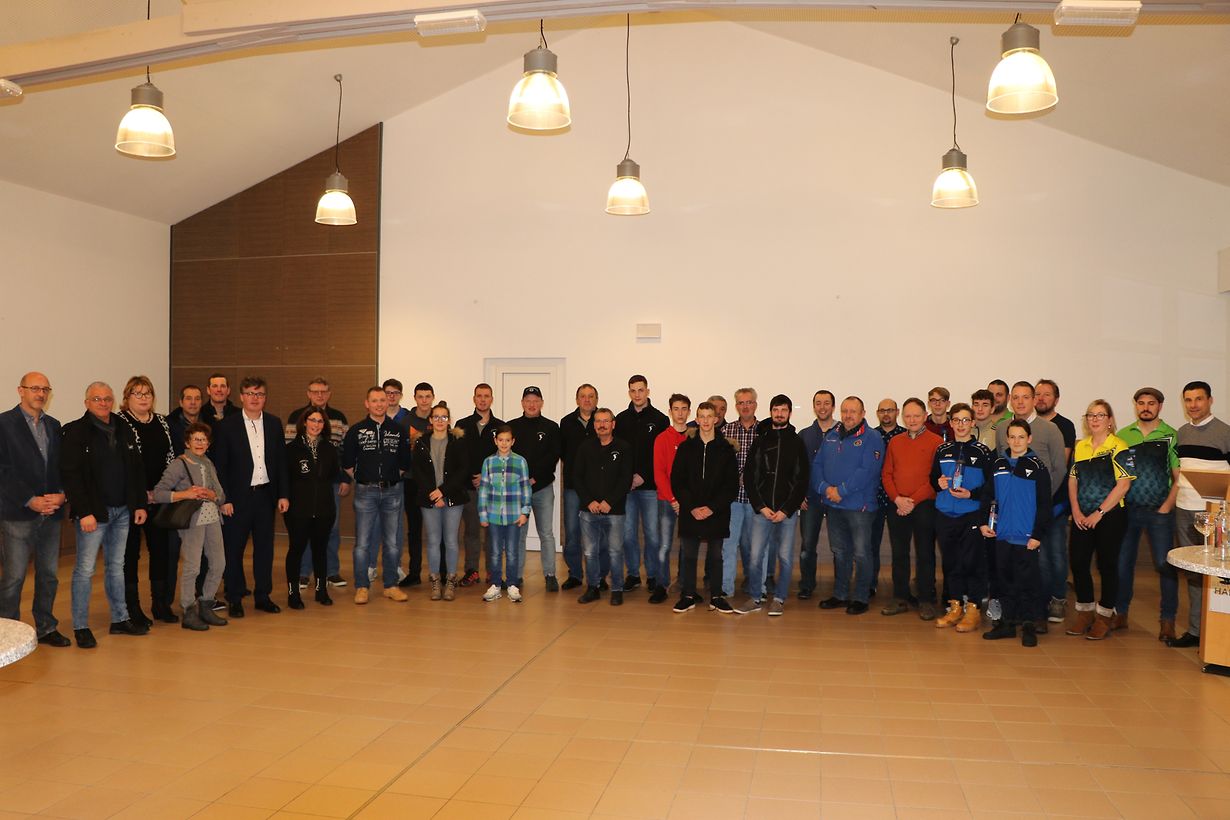 Kürzlich hatte die Sport- und Gesundheitskommission in Zusammenarbeit mit der Gemeinde Habscht zur traditionellen Ovation für Mannschaften und individuelle Sportler eingeladen die über die Saison 2017-2018 durch besondere Resultate und Leistungen herausragten. Jeweils geehrt wurden Gisèle Spanier (Hundesport), François Weiler (Zuchtsport), Christophe Maack (Bogenschießen), Tiffany Devilers (Damenfußball), Lyvia Bouille Oliveira und Thies Felix (Badminton), der Kegelverein „Oenner Ons“ Äischen mit der 1. Mannschaft, der Fußballverein „Alliance Äischdall“ mit ihrer Scolaires-Mannschaft, der Dart Club Boardbangers mit jeweils 6 Spielern in verschiedenen Kategorien sowie der Deschtennis Äischen mit jeweils 9 Spielern . Geehrt wurden für ihre langjährige Zugehörigkeit im Verein des „Deschtennis Habscht“ die Spieler Faber Jeannot für 45 Jahre, sowie Kartheiser Michel für 25 Jahre. Kommissionspräsident Jerry Peffer sowie Bürgermeister Serge Hoffmann beglückwünschten die Geehrten und wünschten ihnen viel Erfolg für die laufende Sportsaison.