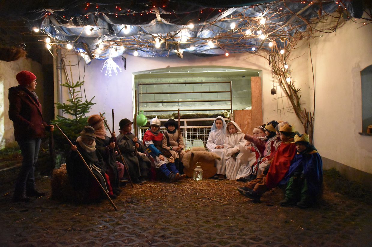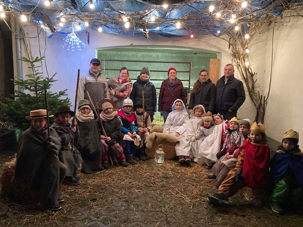 Anlässlich des 10jährigen Jubiläums lud sie alle Organisatoren der Adventsfënster von den letzten 10 Jahren ein zur lebendigen Krippe bei der Familie Schaller in Boevange.