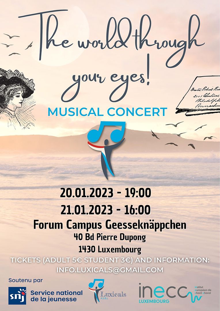 De Musical Concert den vun der Luxicals a.s.b.l organisiert gëtt, ass op véier verschiddene Sproochen (Lëtzebuergesch, Englesch, Däitsch a Franséisch) an beinhalt nieft bekannten Musical Lidder och zwee néi eegen geschriwwen Lidder.