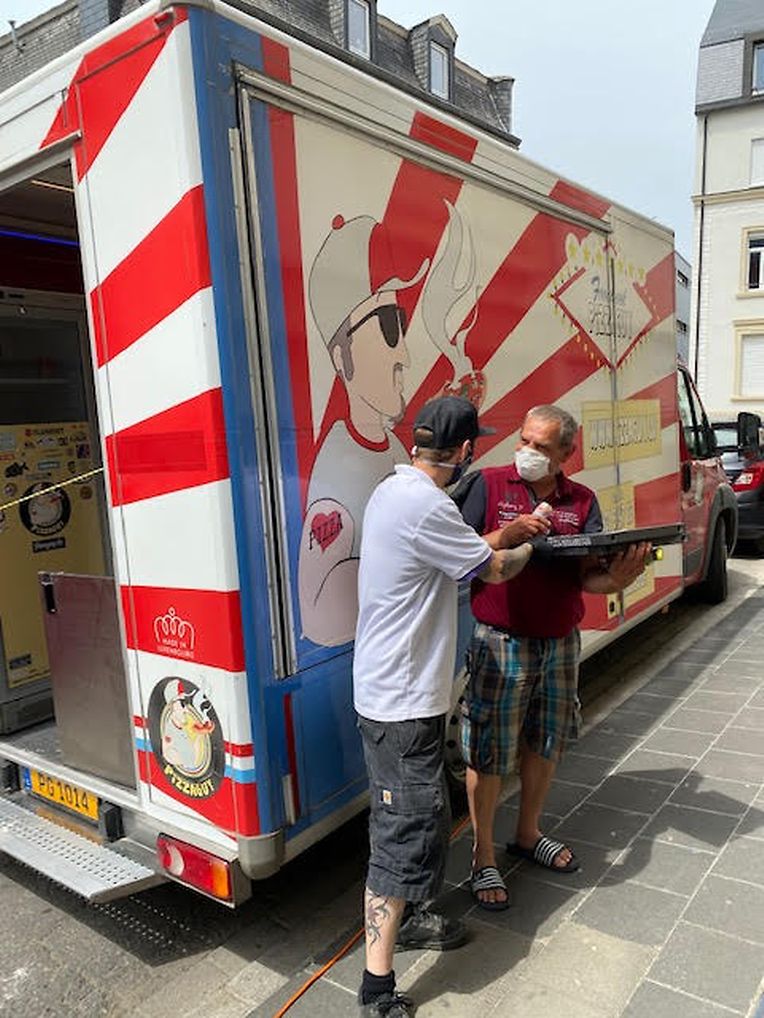 Es war auf Initiative der Firma Ikano, dass Guy Reding, Besitzer des Foodtrucks „Pizzaguy“, (einer der ersten Foodtrucks in Luxemburg und somit auch der erste Truck der Pizzas made in Luxembourg serviert) sich dazu entschlossen hat, gratis 300 Pizzen an sozial benachteiligte Menschen, welche seit dem 7. März ihr Essen im Stehen vor der Tür vom hollericher Sozialrestaurant 7, rue de la Fonderie einnehmen müssen, zu verteilen.