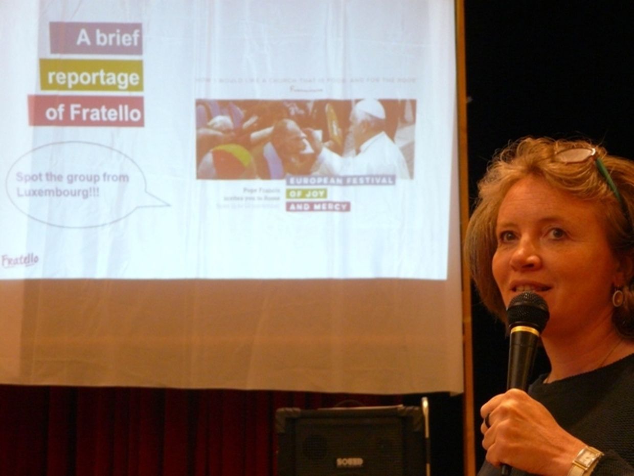 Dans la chapelle recueillie et sobre un petit groupe expriment leur ferveur par une danse, leurs bras deviennent des ailes et leurs pieds effleurent le sol, dans un élan de joie. Les murs de la pièce les isole des effluves extérieurs comme des narines fermées. Le parfum des saucisses grillées se répand tout près, mais il ne parvient pas jusqu’ici. Elles sont dégustées par de grands et petits au palais raffiné. Ils migrent avec leur assiette vers la salle. Et ici tout y là : la grande salle avec une table dressée, pour partager le bonheur d’être ensemble, une belle scène et des stands. La salle décorée s’ouvre, accueillante. Tout incite à la générosité. Et la générosité surgit comme le lait de lune. La lune qui montre ici l’autre visage d’une ville, le visage bienveillant qui, en ce premier weekend de juillet, a voulu rejeter des stéréotypes malsains. Car heureusement le Luxembourg des banques et de l’évasion fiscale sait tourner aussi sur un autre manège. Et nous étions montés sur ce manège. Volontaires infatigables, animant la tombola, assurant le service à table, tenant le marché aux puces et sculptant des ballons. Chacun met tout son cœur pour la réussite de la fête. En souriant à la personne qui donne de l’argent qui ouvre la perspective à des enfants d’aller à l’école ou de se soigner. Nos gestes se transformeront comme par miracle (car l’amour est un miracle à tout moment), pour des enfants qui n’ont rien sinon l’espérance. Enfants qui, peut être, grâce à nous tous, à vous tous, se sentiront soutenus par la tendresse de Dieu et de la Vierge Marie. C’est cela la fête annuelle des Missionnaires de l’Immaculée - Père Kolbe, qui a réuni tant de gens discrets et généreux. Toujours aussi enthousiastes. Capables de célébrer la magie d’une action modeste pour le salut des plus petits. Action qui a été parfois prière, parfois chant, jeu, émotion, mouvement. Comme le mouvement de ces bras qui gravaient en nos cœurs le sens de la danse hébraïque. Ou le mouvement d’un jeune homme qui transformait les ballons en fleurs. Et encore ces mains qui pêchaient les numéros de bingo ou qui cuisinaient des lasagnes pour le plaisir des convives. Mains jointes pour prier. Les yeux fermés. Pour imaginer un monde meilleur. Et qui peut commencer aussi avec cette fête. (Photos : Laurent Pouit)