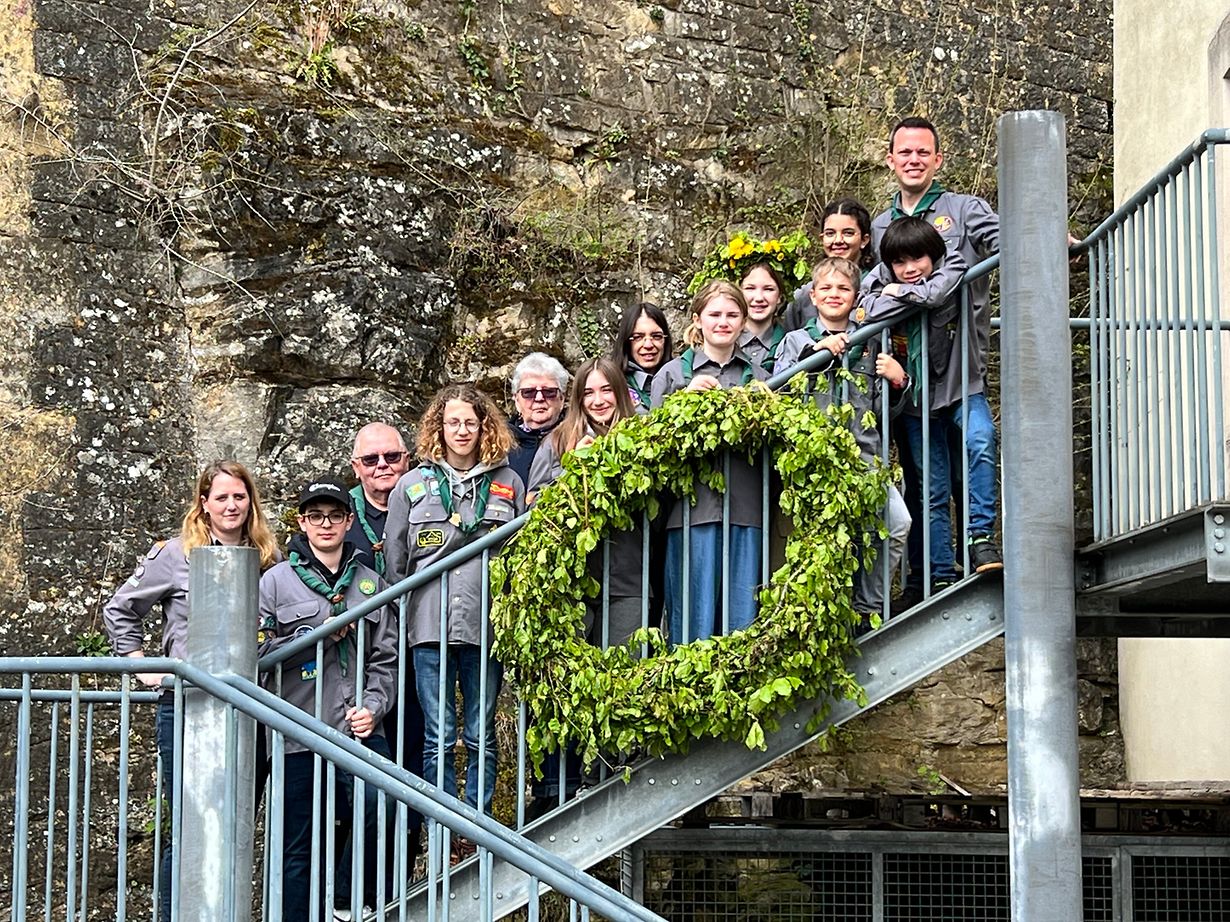 No den Meekranz am Foyer ofgehaangen gouf, konnten ons Scouten & Guiden, Rover an Tembo zesummen mat hieren Cheffen an den Awunner aus dem Altershëmm virum Mëttechiessen e gudden Apero genéissen.