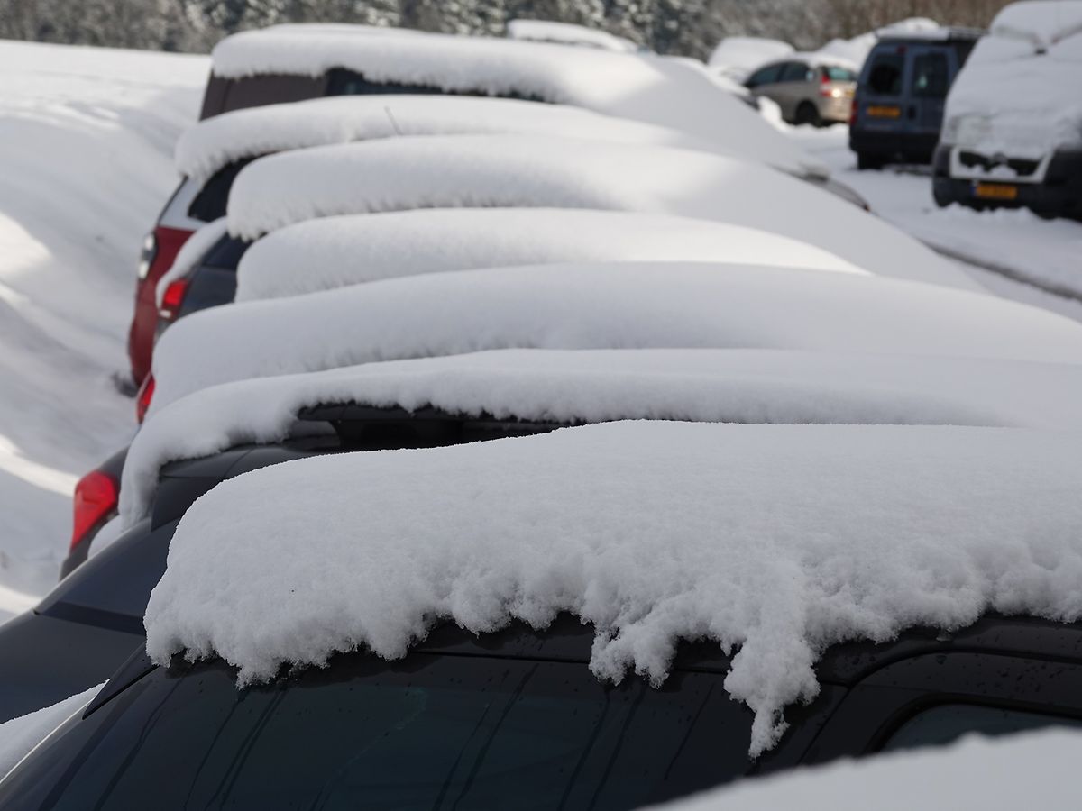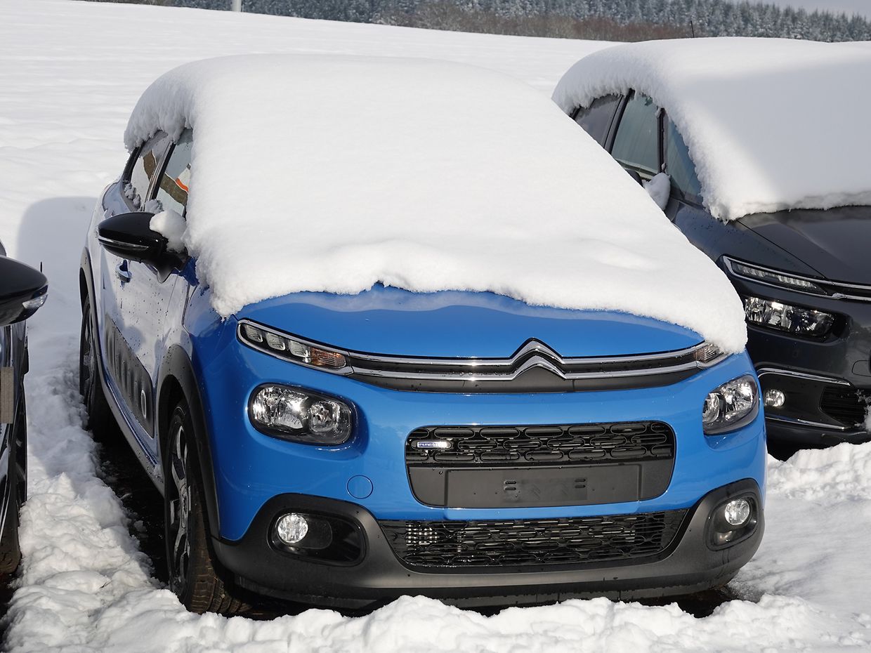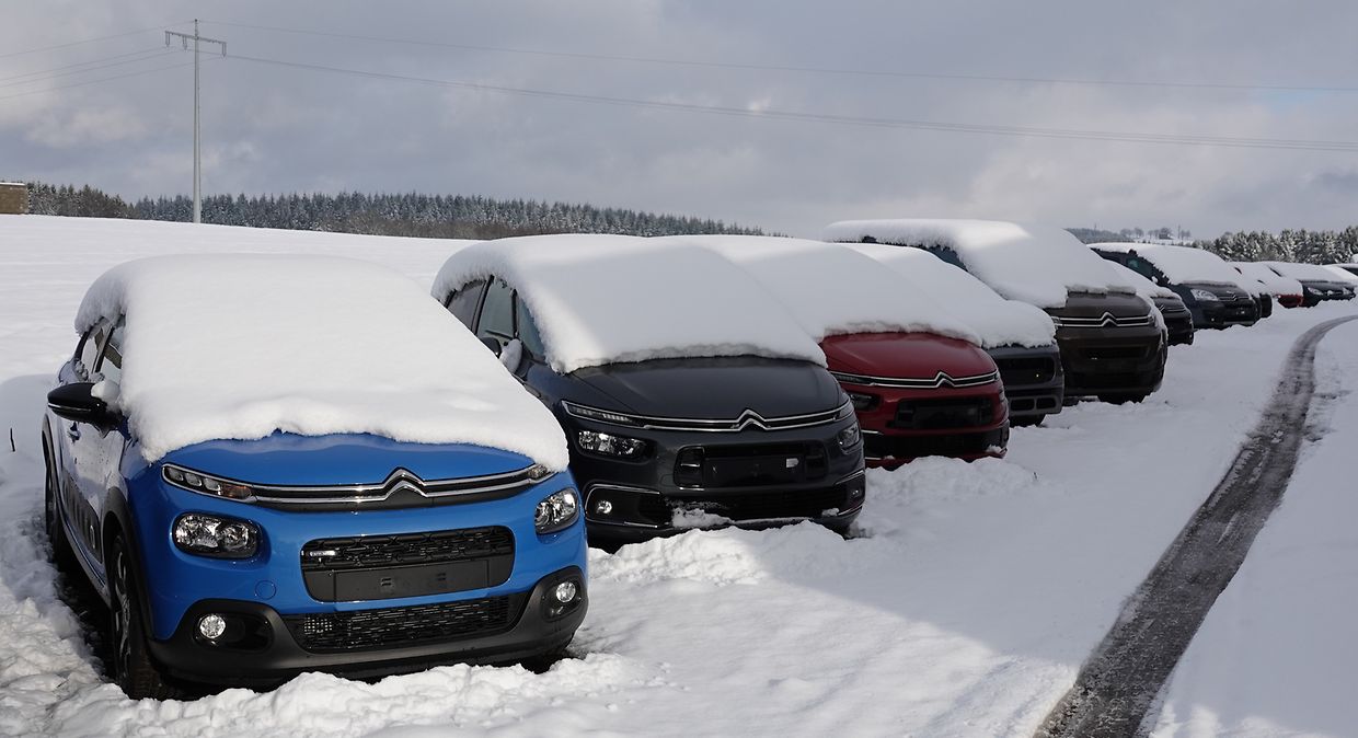 Autos und Natur unter dicker Schneelast eine Woche vor Beginn des Autofestivals