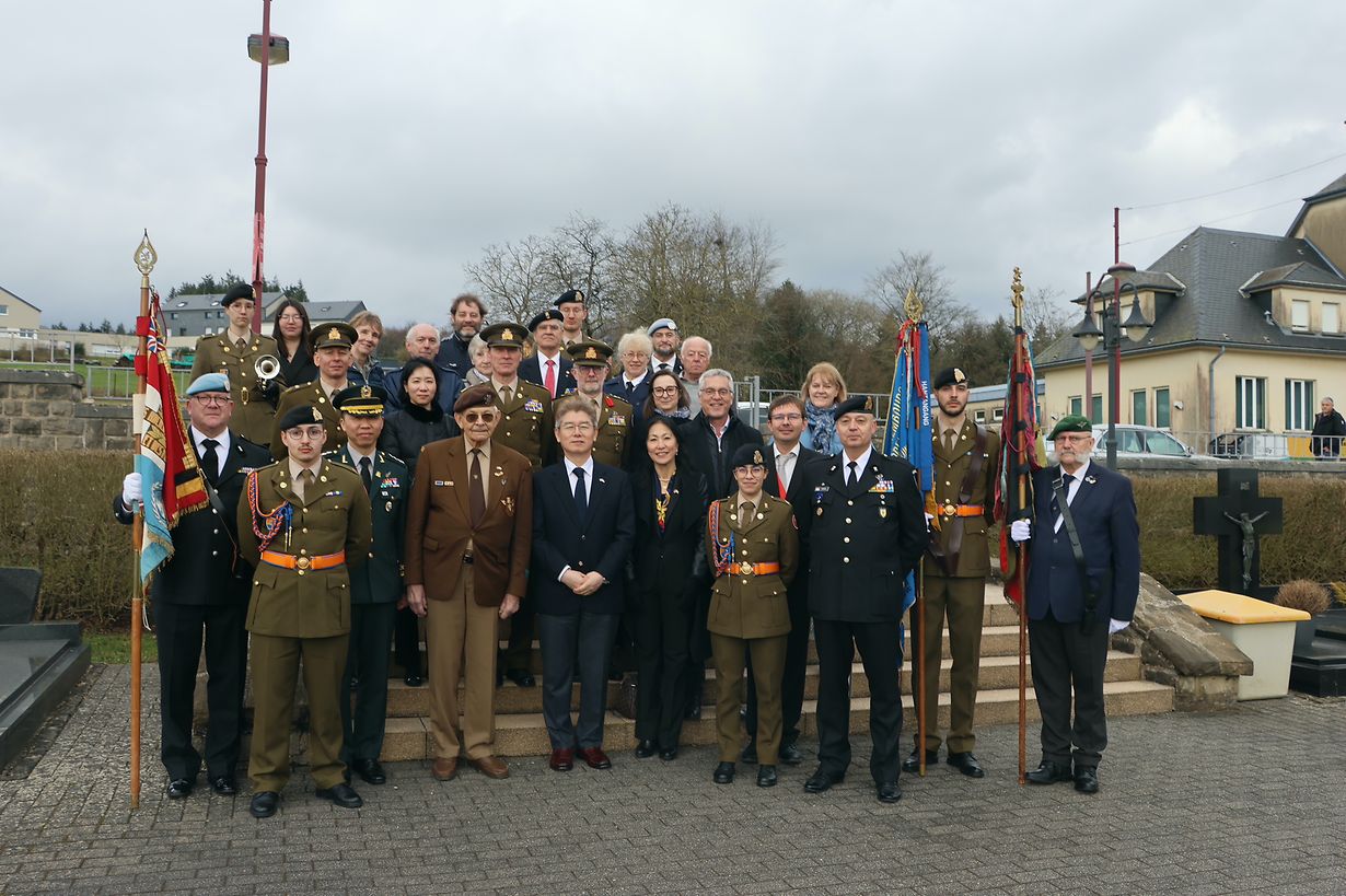 E Samschdeg, den 16. Mäerz 2024 huet d’LKA (Luxembourg-Korean Association ASBL) zesummen mat der AACSPL (Anciens Combattants) an der Arméi den zwee lëtzebuerger Zaldoten geduecht, déi am Koreakrich gefall sinn. Et sinn dëst déi zwee eenzeg Affer, déi d’Lëtzebuerger Arméi nom Zweete Weltkrich erlidden huet. Et handelt sech em de Caporal Roger Stutz (+22.08.1952) an de Sergent Robert Mores (+26.09.1952), déi allebéid zu Choko-Ri leie bliwwe sinn. Hier stierflech Iwwerreschter sinn den 15. Mäerz 1953 op Lëtzebuerg zréckkomm, wou si dunn schlussendlech am Rollengergronn, den 18. Mäerz 1953 respektiv zu Rammerech, den 19. Mäerz 1953 mat militäreschen Eieren an hirer Heemecht begruewe gi sinn. 71 Joer duerno zieren och elo Erënnerungsplaquen dës Griewer, déi feierlech vun der Ministesch Yuriko Backes an dem koreaneschen Ambassadeur devoiléiert goufen. Den Ambassadeur Jeonghyun RYU huet nach eng Kéier extra dem koreanesche Vollek seng Dankbarkeet vis-à-vis vum Lëtzebuerg ausgedréckt a betount, datt dësen Asaz vun de Lëtzebuerger Zaldoten ni vergiess gi wäert. Ouni déi ganz Hëllef, déi Korea deemools krut, kéinten si haut net a Fräiheet liewen an hiert Land hätt sech net esou gutt entwéckle kënnen. Weider Informatiounen zum lëtzebuerger Koreakrichasaz fannt dir op https://korea.mnhm.net/index.php/fr/
