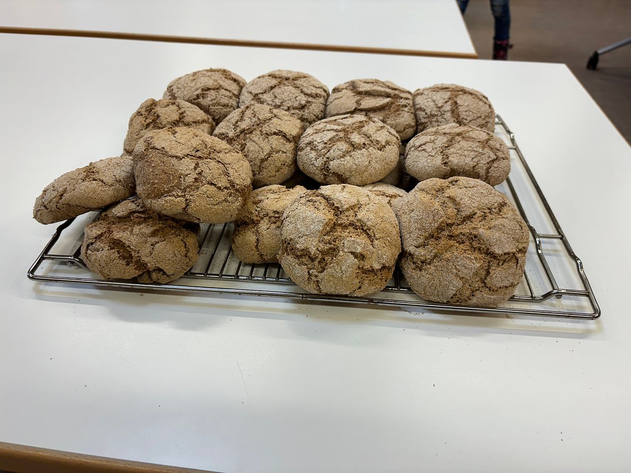 No der Kateches ënnert der Leedung vun der Madamm Josée Simon-Clesen hu si zesumme, mat der Ënnerstëtzung vun der Madamm Marlen Schanck, Brout gebak.