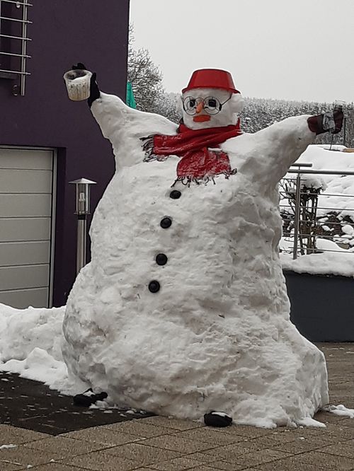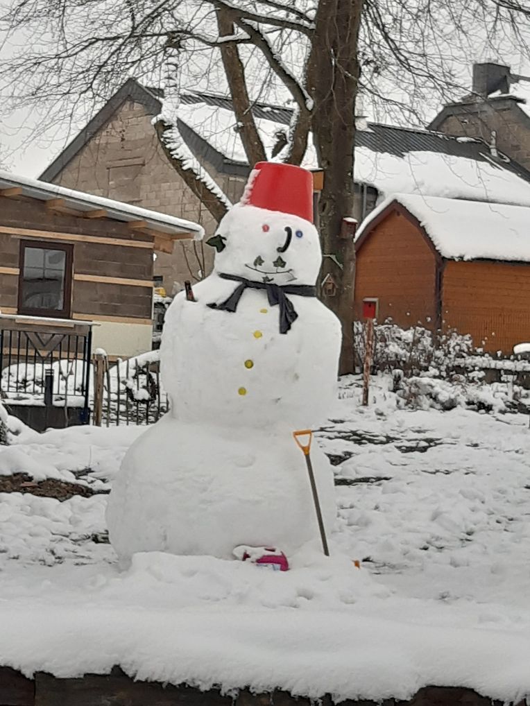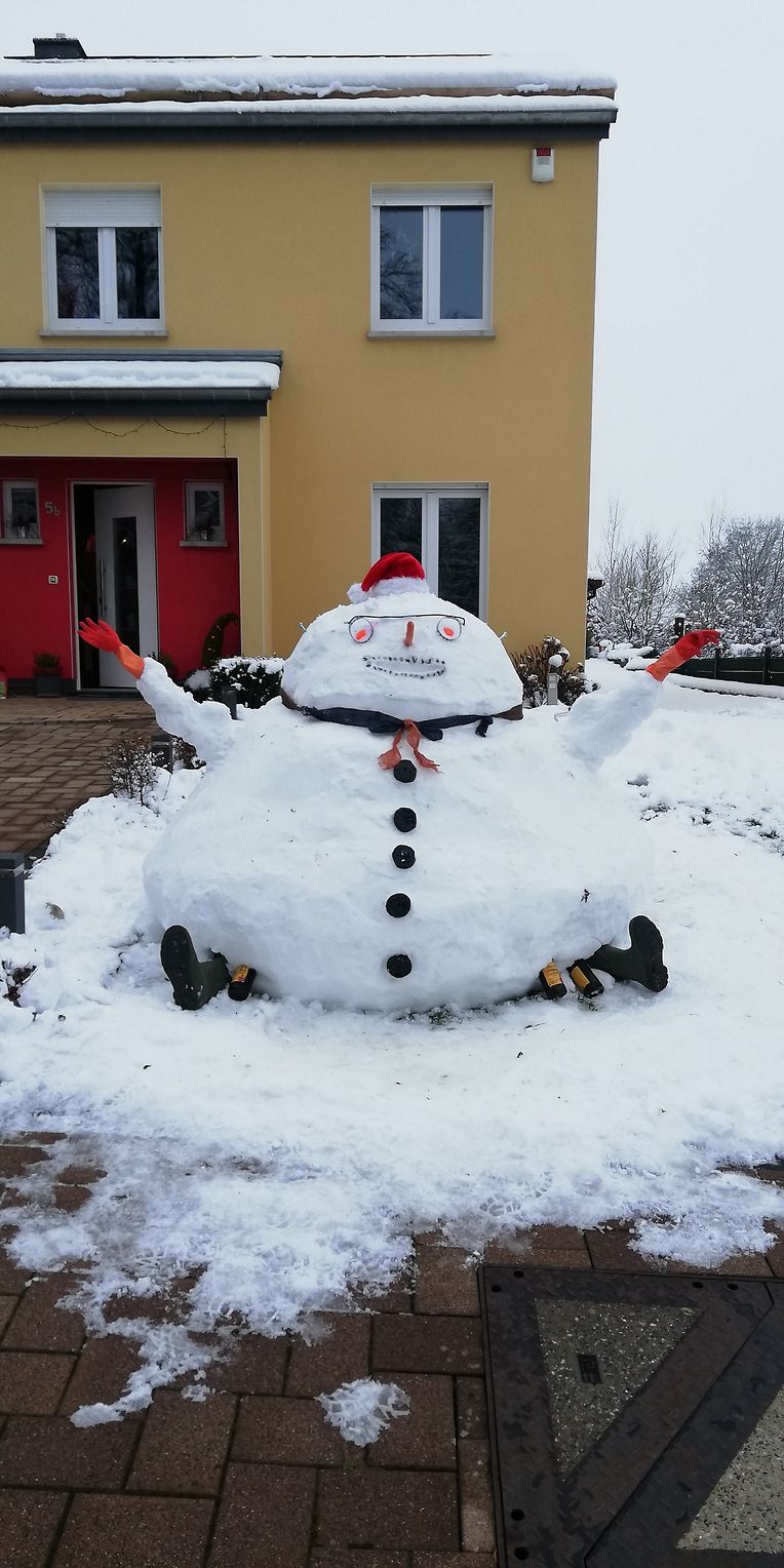 Ich melde mich heute bei Euch mit lustigen Bilder von Schneemänner aus unserer Ortschaft Huldange, im schönen Ösling! Durch die Corona Einschränkungen haben viele unserer Dorfbewohner sich von ihrer kreativen Seite gezeigt! Da wir schon seit Weihnachten mit der weissen Schneebracht gesegnet sind, wurde eine richtige Challange daraus, wer macht den grössten, dicksten und ausgefallensten Schneemann. Muss aber noch dazu sagen, das nicht nur die kleinen Kinder Spass daran hatten einen Schneemann zu bauen, auch das *Kind im Manne* hatte seinen Spass. Einige Kreationen von Schneemänner möchte ich gerne mit Euch teilen, und hoffe das in Ihrer nächsten Ausgabe von den Huldanger Schneemänner was veröffentlich wird !