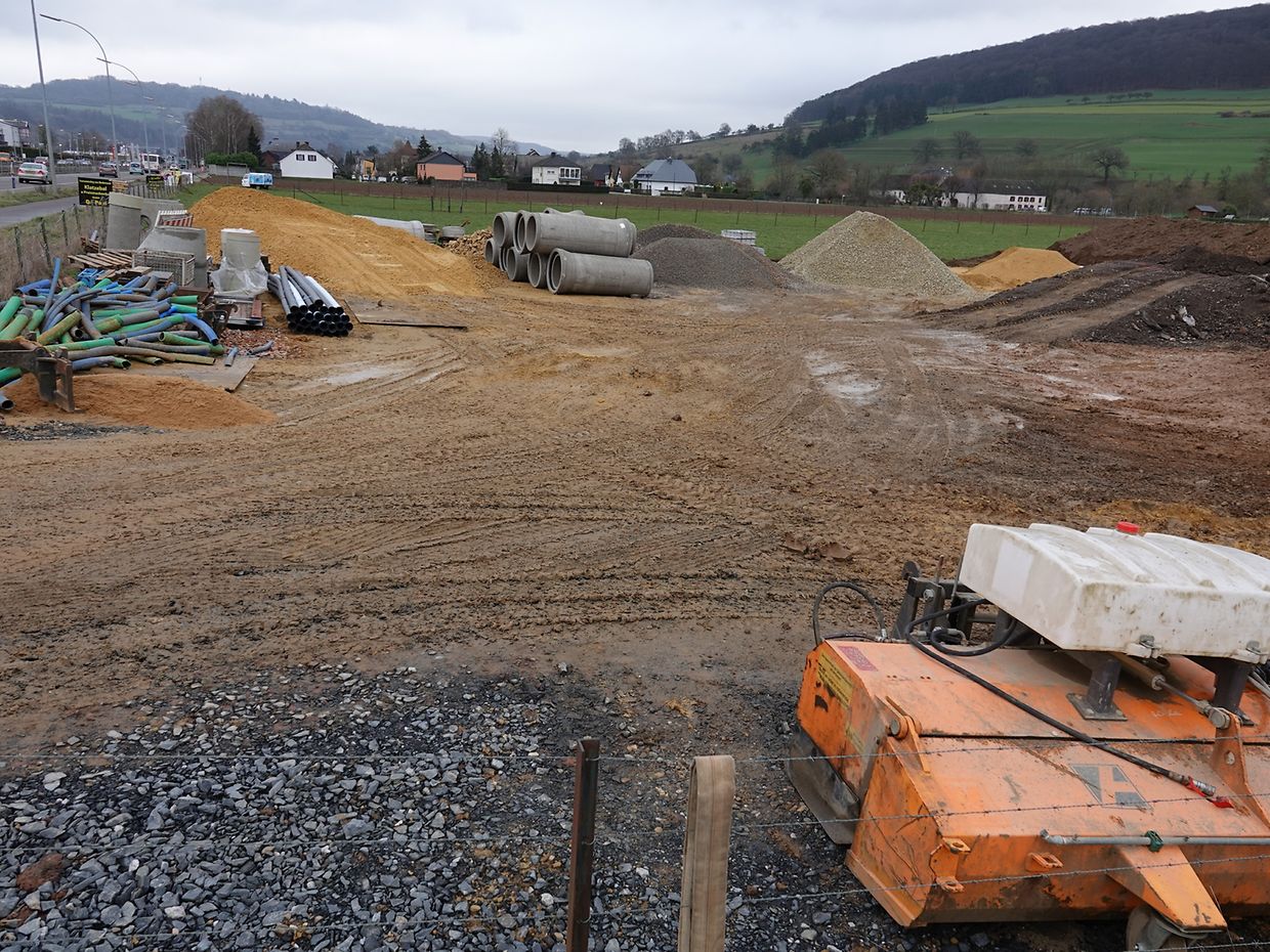Unmittelbar neben der Q8-Tankstelle hat eine Baufirma seit Wochen einen Lagerplatz für Sand, Kies, große Kanalisationselemente aus Beton usw. angelegt, auf dem kniehoher Schlamm zu sehen ist. Beim Verlassen des Lagers hinterlassen die Reifen der schweren Lastwagen auf der mittleren Fahrbahn der viel befahrenen N27 bis zur Einmündung in die "Rue des Bergers", wo besagte Firma tätig ist, eine doppelte schmierige Schlammspur, welche sich bei Regen in eine braune Brühe verwandelt. Innerhalb kurzer Zeit sehen die vielen Fahrzeuge, welche zur Q8 Tankstelle mit Postshop, zum Farradfachgeschäft, zur Pizzeria , zum Lidl und zur Einmündung in die Einbahnstraße "Rue des Bergers" (momentan in verkehrter Richtung zu befahren) aus wie die Rennautos einer WM-Rallye und laden ein zu einem Besuch der nächsten Waschstraße,um wenigstens die Nummernschilder wieder lesbar zu machen, sonst droht Strafe durch Polizei wegen Missachtung des Code de la Route. Obwohl täglich öfters Polizeifahrzeuge diese Stelle in beiden Richtungen passieren, .erfolgt nichts.Seltsam!
