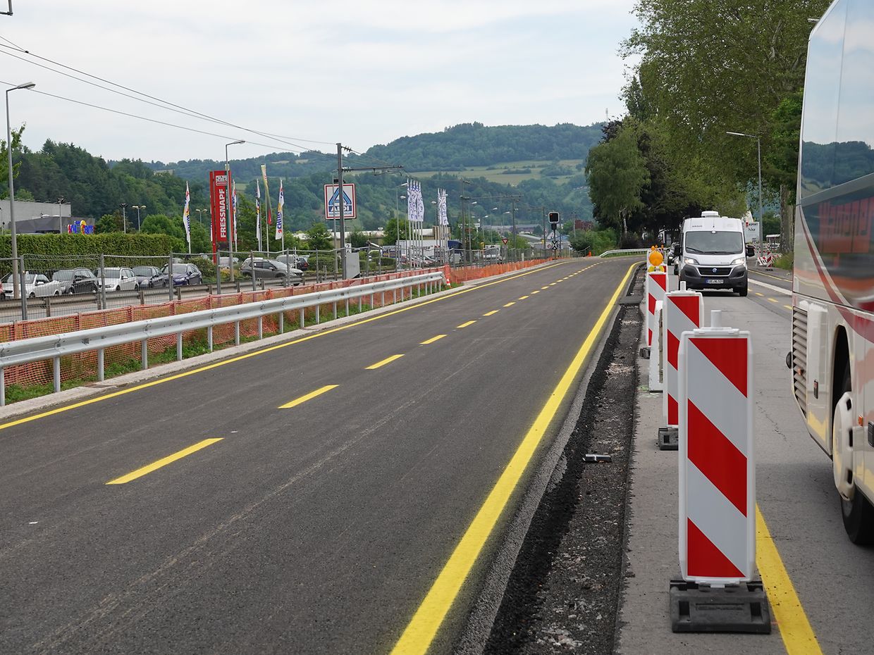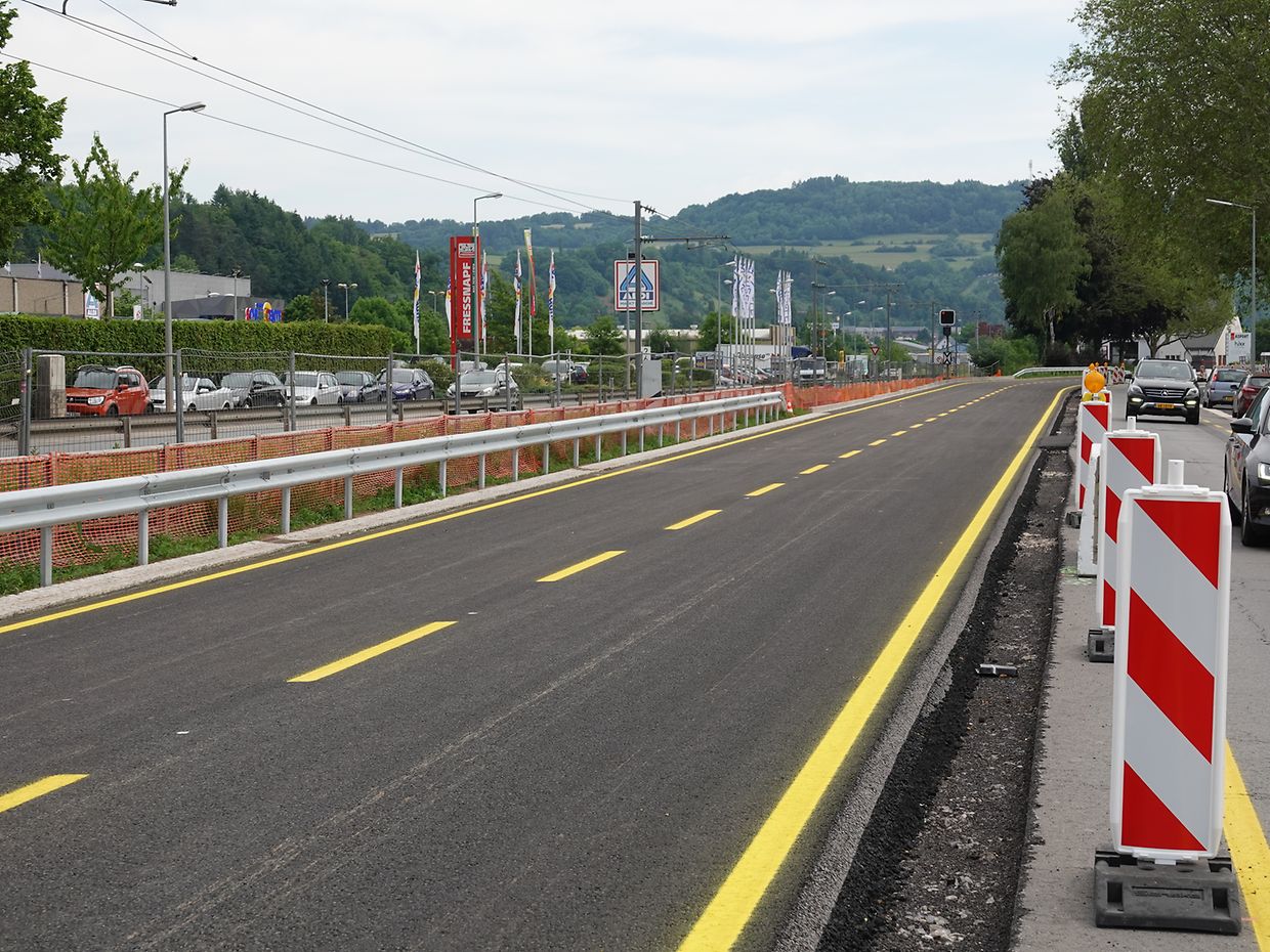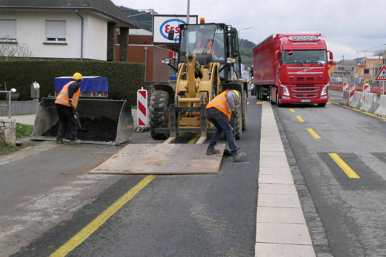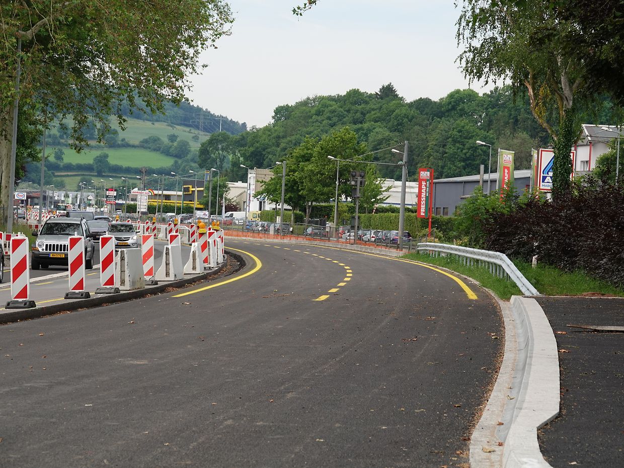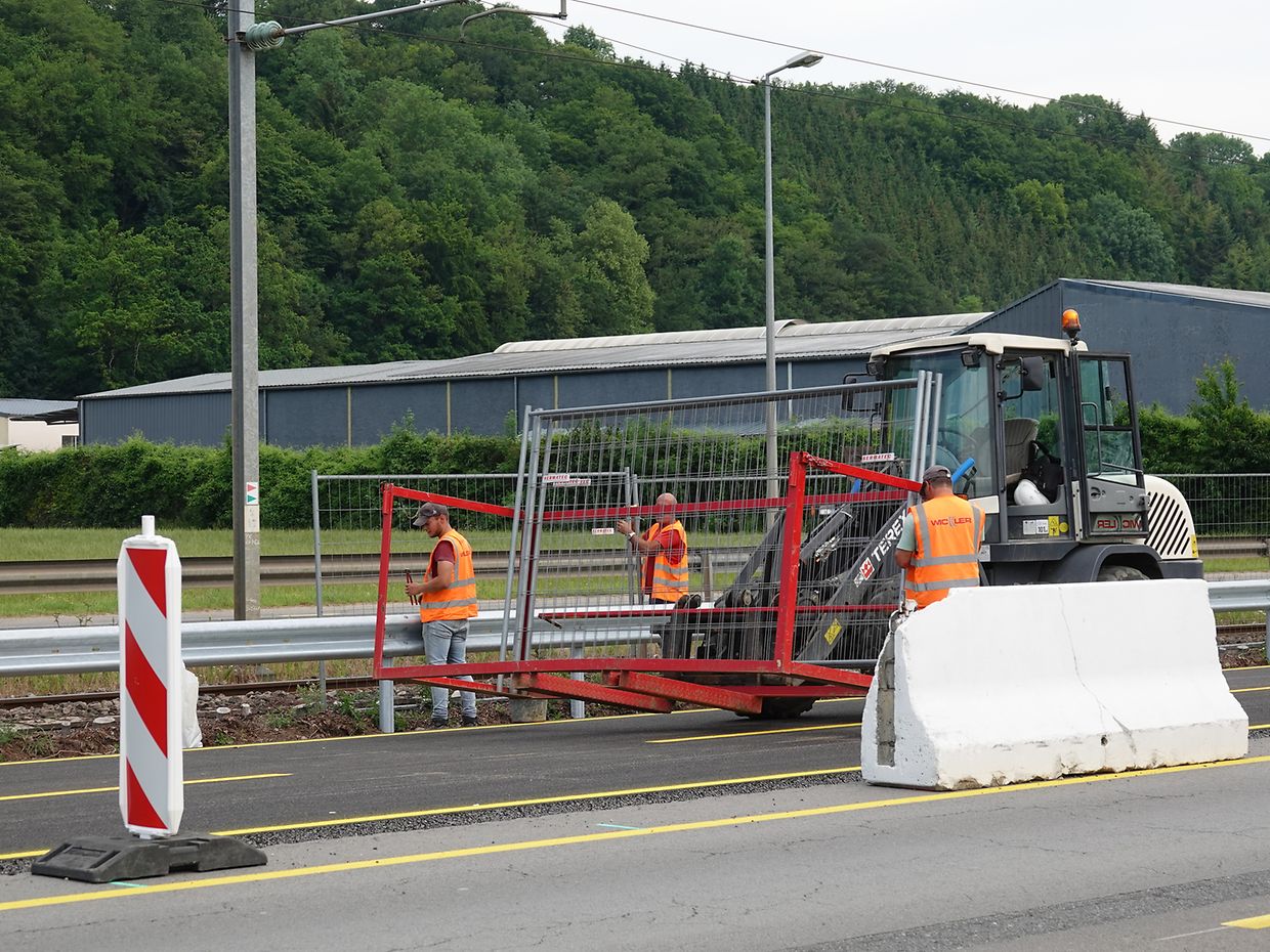 De 15. Juni 2019 war vun de Ponts et Chaussées virgesinn, fir de Verkéier op der N7 vum Krees Dräieck bis kuerz virum Mc Donald op déi aner Halschend vun der Stroos verluegt ginn, mee d'Leitplanken goufen nit mat Zäit färdeg installéiert. De Bitum Teppech ass ewell méih laang verluegt an d'Stroossemarkéirungen goufen vun de P ç Ch opgedro. Och beim Dräieck ass d'Firma Rinnen nach nit mat den Aarbechte färdeg: Hei gëtt d'Stroos méih breet; d'Insel ass verschwonn an den Trottoir gouf a Richtung Dikrech op der lénker Säit bis an den Hiwwel verluegt, fir op 17,75 Meter Breet ze kommen, déi fir déi ganz Achs virgesi sinn. Op där anerer Halschend gëtt ët méih komplizéiert, weéé do all d'Leitunge mussen erneiert ginn, mat Beliichtung, Foussgänger- a Veloswee an Zoufahrten zu den Tankstellen man aner Betriber (Garagen, Cactus asw.). Dofir sinn eng 18 Méint virgesinn an ë soll op 2 Schichte geschafft ginn, vu moies 6 bis owes 22 Auer.