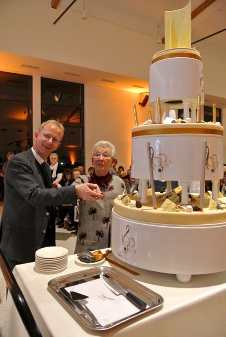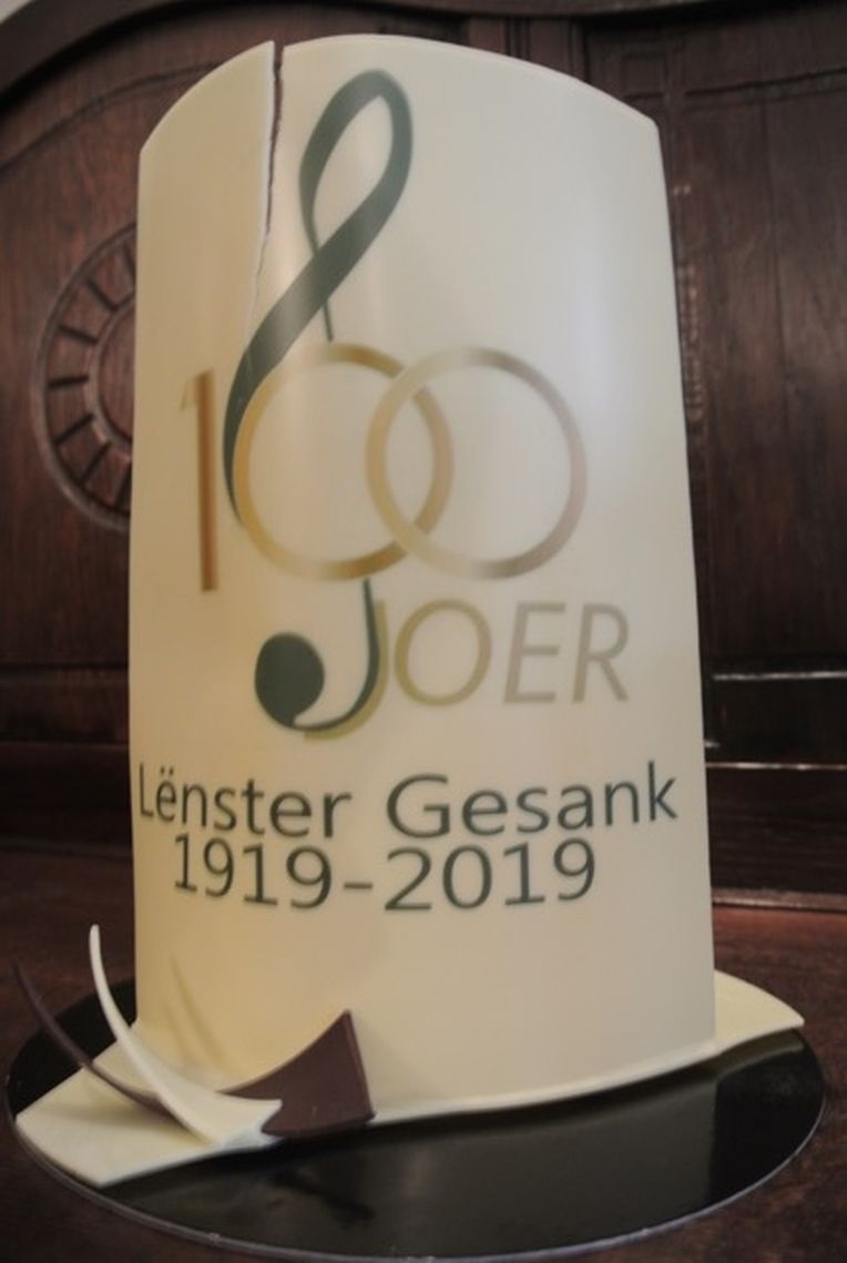 Am 10. November verschönerten die Chorales Ste-Cécile Eischen, Hobscheid und Koerich mit ihren Gesangseinlagen das Hochamt, ehe dann die Musikvereine der Gemeinde Junglinster – Chorale Ste-Cécile Junglinster, Chorale Ste-Cécile Buerglënster/Amber, Lënster Musek, Bierger Musek, Mandolinenverein La Lyre – am 22. November zum offiziellen Galakonzert des 100-jährigen Jubiläums in die Mehrzweckhelle einluden. Das Highlight des Abends bildete das Aufschneiden des Geburtstagskuchens durch die Präsidentin Ferny Wagener-Wecker und den Präsidenten des Organisationsvorstandes Francis Erasmy.
