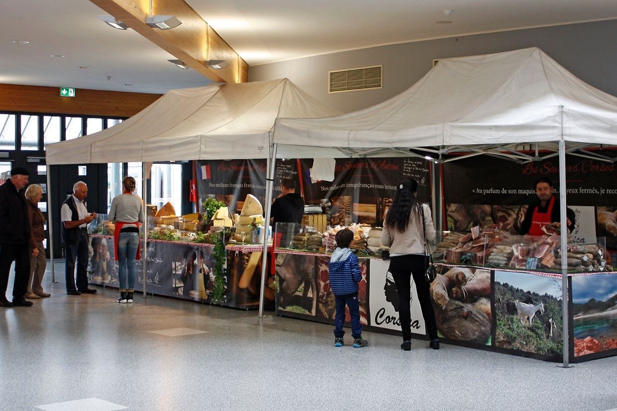 20 Produzenten a Verkeefer hunn de Leit hier Wueren ugebueden. Wéi all Joer haten d’Visiteuren d’Geleeënheet allerlee Iesswueren, Gedrénks an handwierklech Aarbechten vu lëtzebuerger an auslännesche Produzenten z’entdecken.