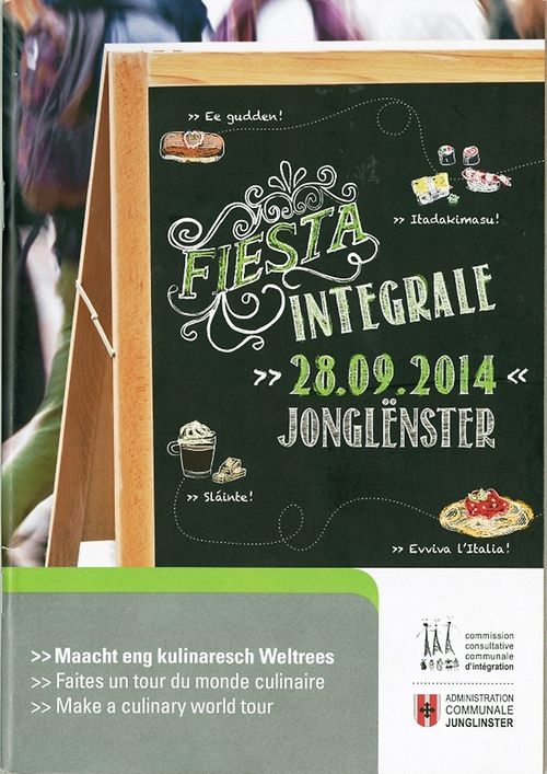 Le 28 Septembre de 11h à 18h au Centre Culturel AM Duerf (Junglinster), l’Administration communale de Junglinster et la Commission consultative communale d’intégration organisent la « FIESTA INTEGRALE » qui se propose de faire, cette année, un tour du monde culinaire.