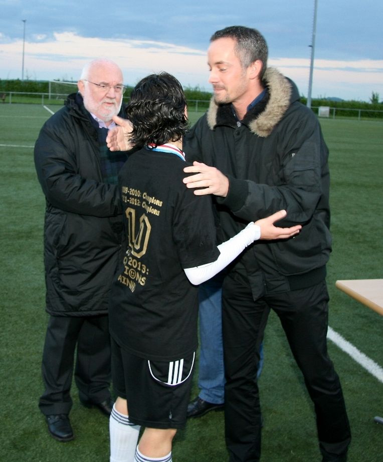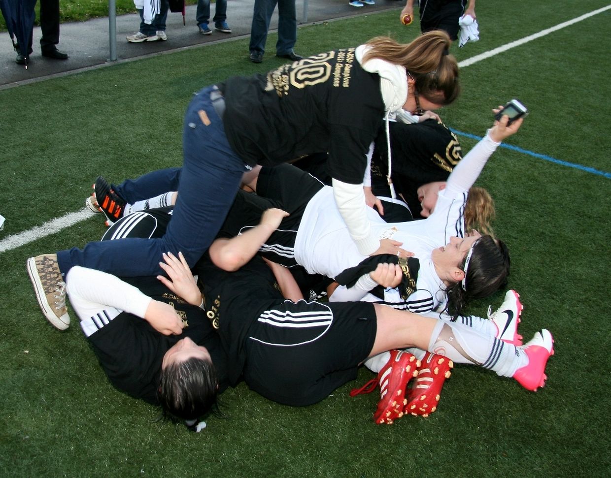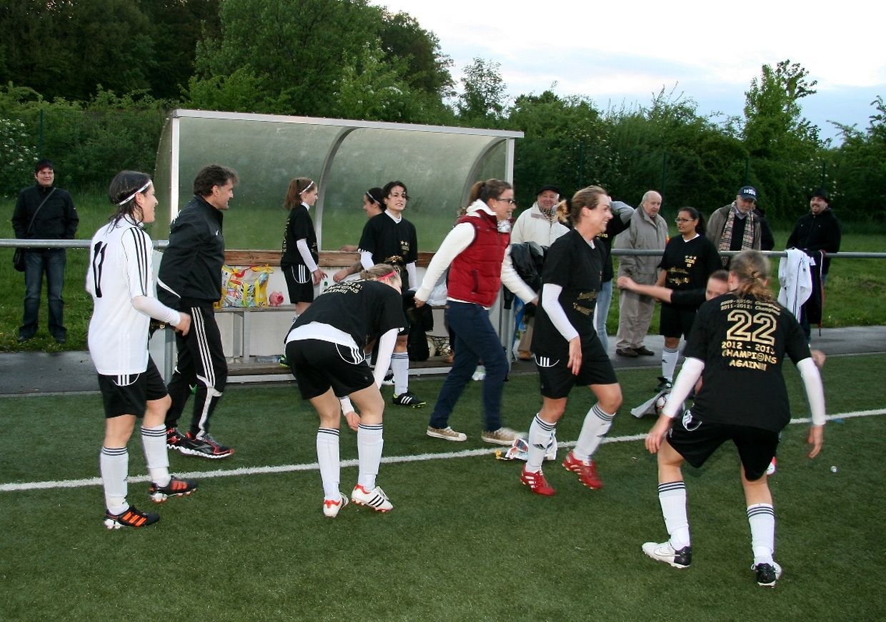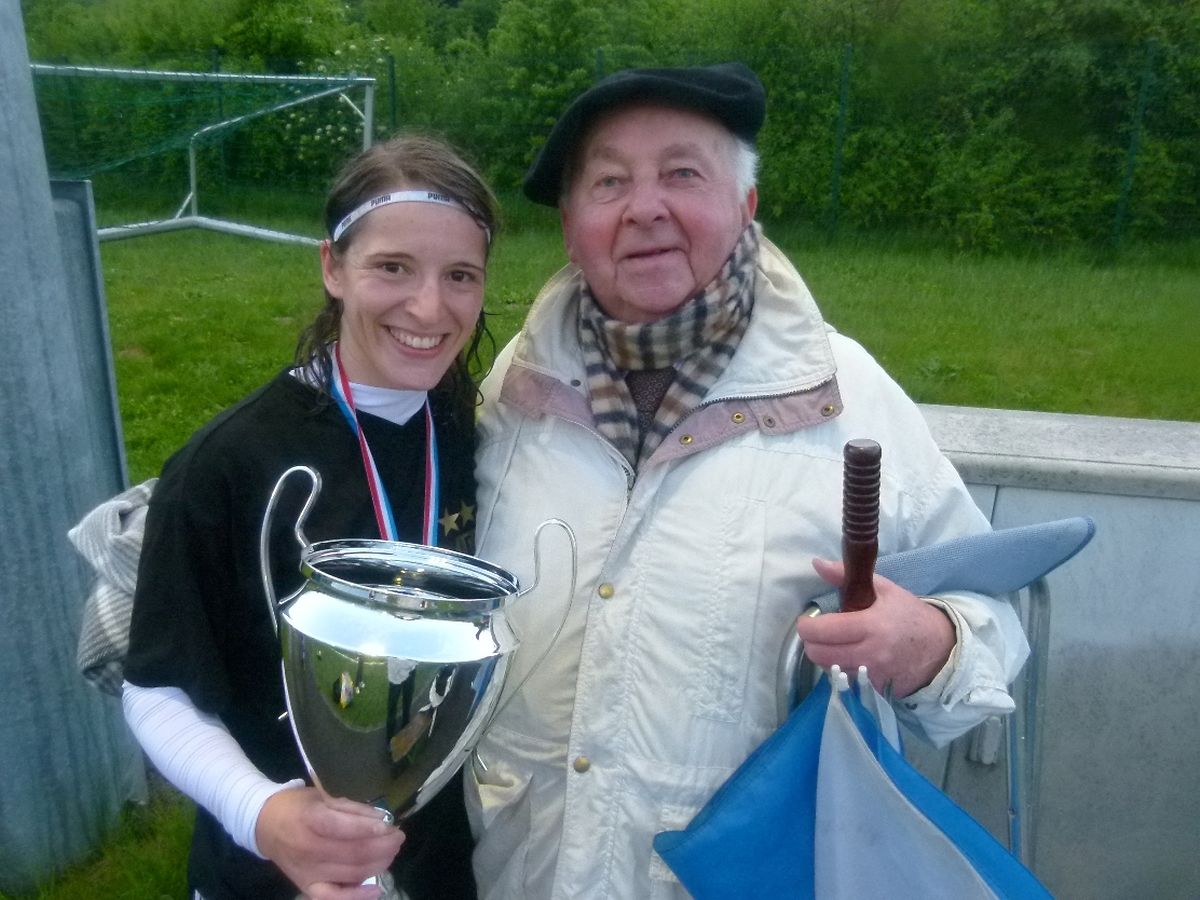 Mat de Spillerinnen hu sech all hir Frënn - a besonnësch hiren treiste Supporter, den Armand Roller - immens gefreet. Et ass nëmmen normal, datt duerno esou richteg vun de Splllerinnen, hirem Trainer Calo Calmes, hirem Masseur Wolfgang Berwanger, hire Frënn a Supportere gefeiert ginn ass. Elo feelt nach en Erfolleg an der Coupe-Finale an den Doublé 2013 ass perfekt. Mir drécken de Spillerinnen an dem ganzen Team d'Daimercher ganz fest! (dd)