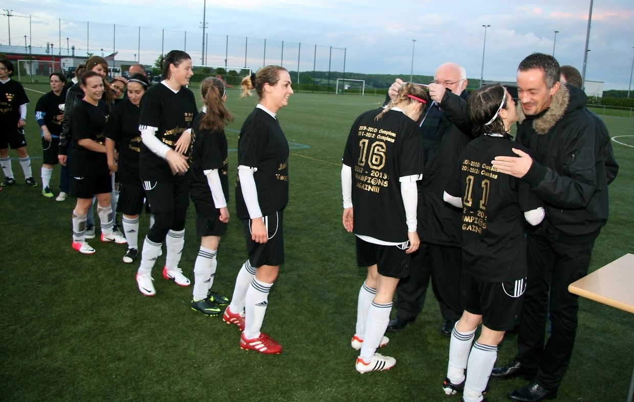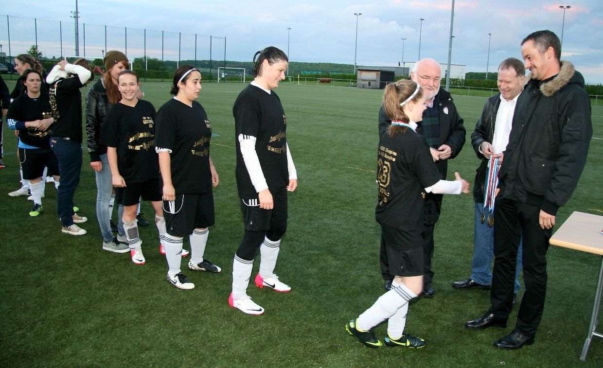 No engem 5:3 Erfolleg e Samsdeg géint d'Equipe vun der Entente CEBRA/Gaasperech ass si erëm eng Kéier Landesmeeschter. De Responsable vun der FLF fir den Dammefoussball, den Nicolas Schockmel, den Erni Decker an de Vizepresident vun der FLF a President vum F.C. Jonglënster, de Claude Kremer, hunn den erfollegräiche Spillerinnen d'Coupe an d'Medaillen iwwerrécht.