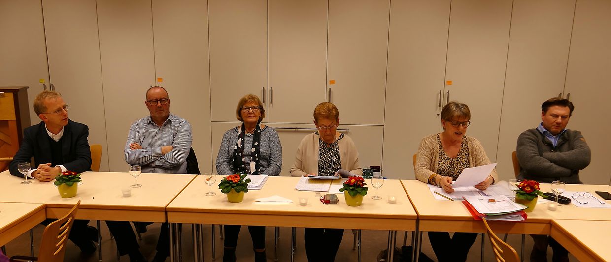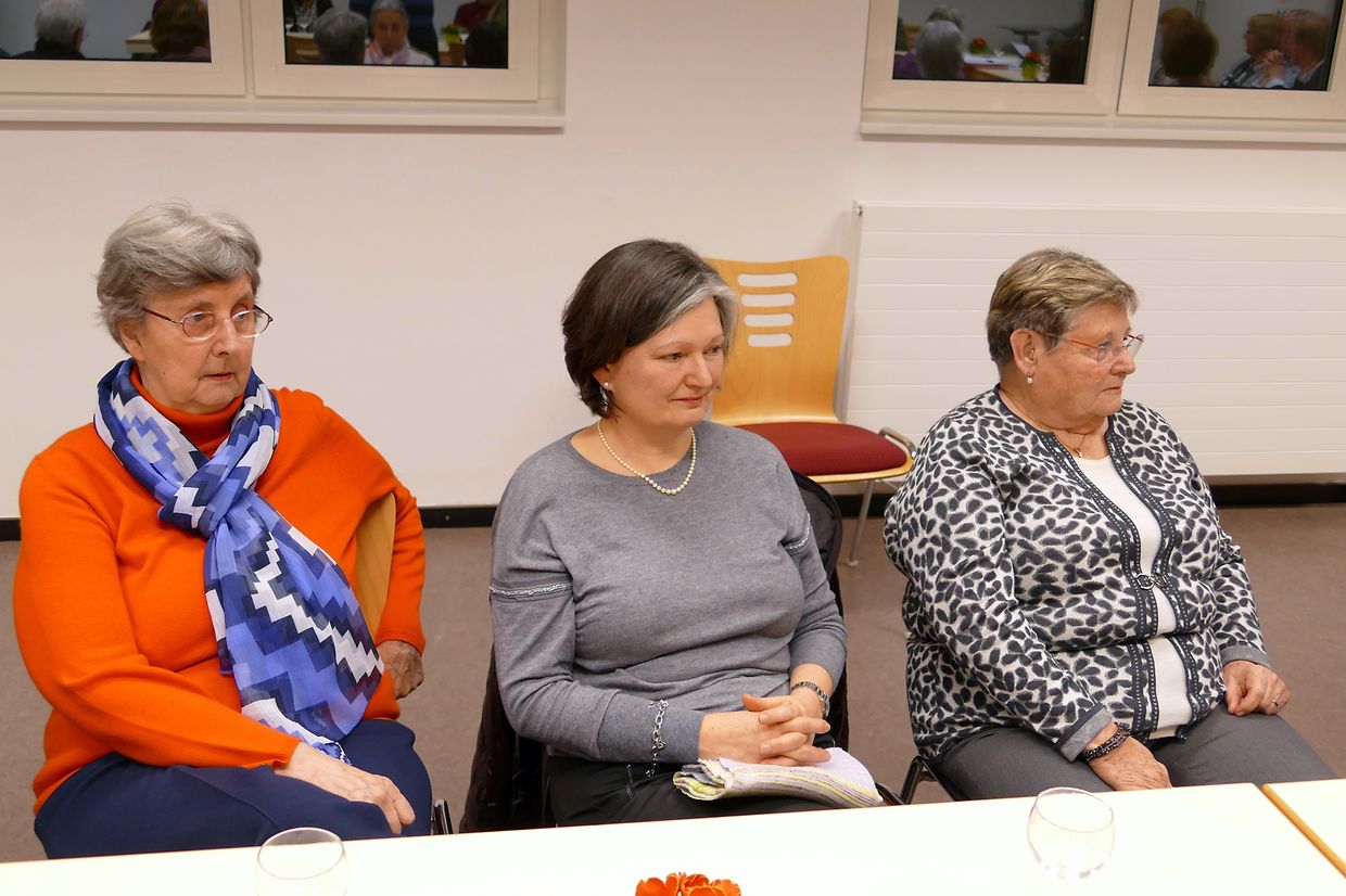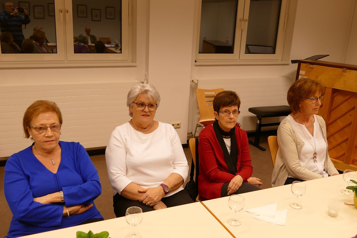 Im vergangenen Jahr trafen sich die Mitglieder des Gesangvereins von Junglinster im Durchschnitt jeden dritten Tag, um ihre eingegangenen Verpflichtungen optimal zu erfüllen, und dies im Interesse des Vereins und der Gemeinschaft. Die Präsidentin, Ferny Wagener-Wecker, zeigte sich erfreut über die ausgezeichneten Resultate der vergangenen zwölf Monate auf gesanglicher Ebene und über die hervorragende Atmosphäre, die im Chor herrsche. Ihr Dank galt allen, die zum Erfolg der vergangenen Saison beigetragen hatten : dem Dirigenten Luc Nilles, dem beigeordneten Dirigenten François Marmann, den Organisten Laurent Felten, Patrick Colombo und Erny Santer, dem Pfarrer Francis Erasmy, dem Ehrenvorstand, der Gemeindeverwaltung, aber vor allem den aktiven Sängerinnen und Sängern. Sie hob den Einsatz und die Begeisterung sämtlicher Aktiven hervor, die alle ihr Bestes hergäben, damit die Qualität des Gebotenen sich permanent verbessere. Als Highlight der Saison gelte ohne jeden Zweifel das gemeinsme Konzert vom 22. Oktober 2017 mit dem Chor Consdorf/Berdorf sowie dem Basilikachor und Mitgliedern aus Chören der Gemeinde, wo das Requiem von Gabriel Fauré sowie die Mass for Peace von Karl Jenkins mit Bravour vorgetragen wurden. Verschiedene verdienstvolle Mitglieder wurden vom Vorstand für ihren unermüdlichen Einsatz mit Geschenken belohnt. Die Präsidentin hob noch hervor, dass Jeanne Bauer-Kieffer und Jules Schummer seitens des Schöffenrates für ihre langjährigen und mannigfachen Dienste am Verein ausgezeichnet wurden.