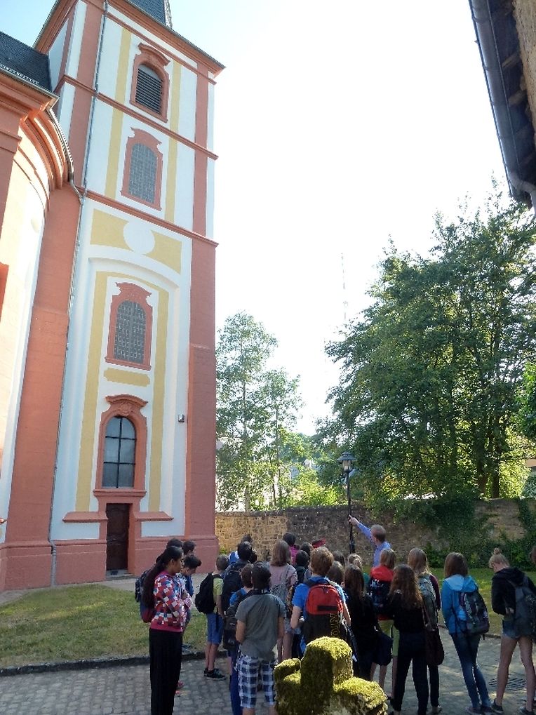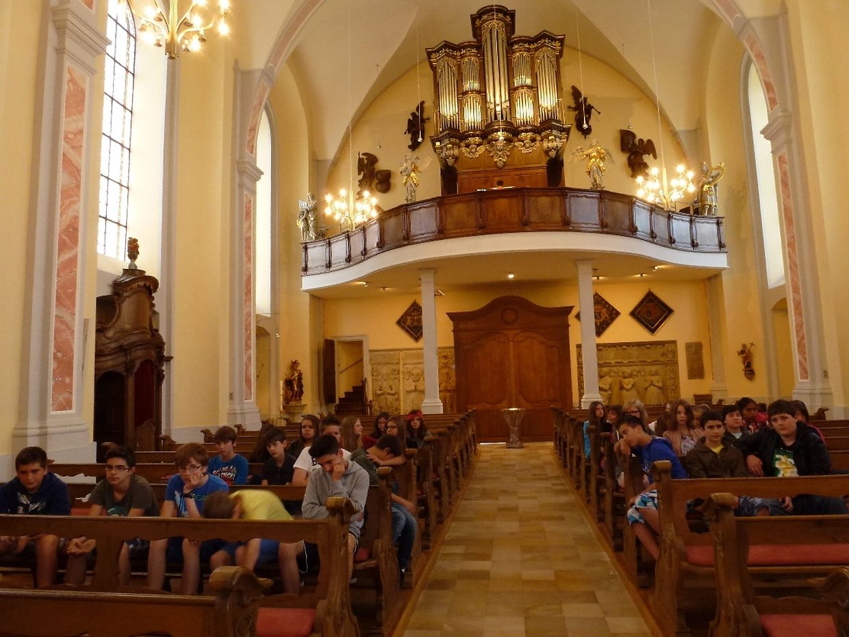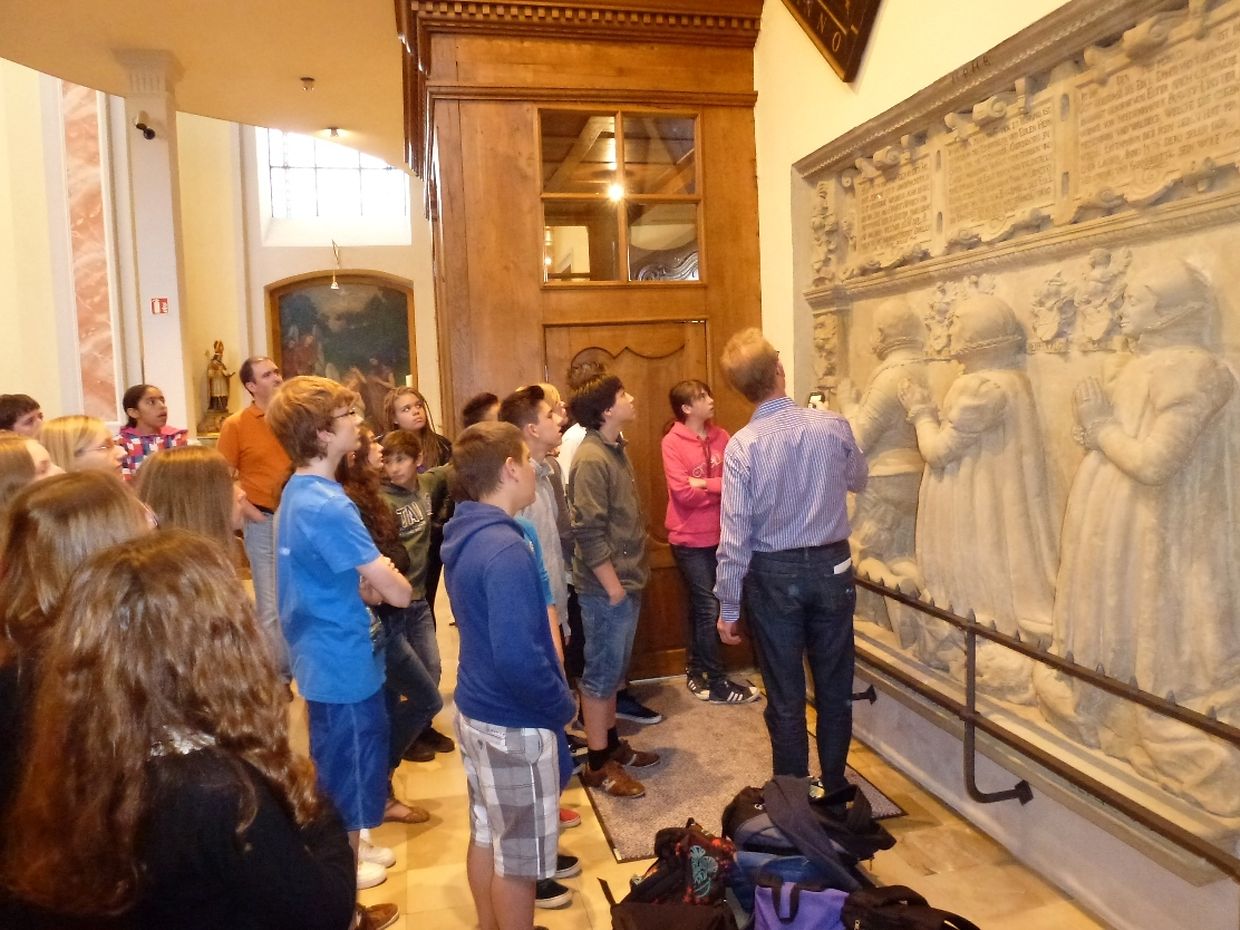 Am vergangenen 24. Juni konnten die Septimaner der Klassen 7O8 und 7O9 aus dem LCD Mersch, begleitet eben von ihrem Musiklehrer Luc Nilles, die fantastische Architektur, sowie die aussergewöhnlichen Malereien und Holzarbeiten der hiesigen Sankt Martinus Kirche bestaunen. Pfarrer Francis Erasmy wusste die jungen Besucher mit seiner eloquenten Sprache und seinen fesselnden Ausführungen in seinen Bann zu ziehen und erreichte, dass trotz der Unmenge an historischen Informationen, es keinem der jungen Zuhörer zu irgendeinem Zeitpunkt langweilig wurde. Alle waren begeistert und bemerkten später fasziniert, wie Pfarrer Francis Erasmy aus einem profunden historischen Wissen schöpft, welches einer nie versiegenden Quelle gleichkommt.