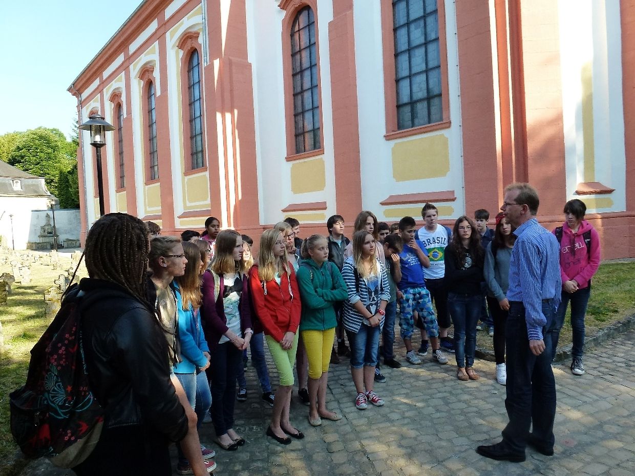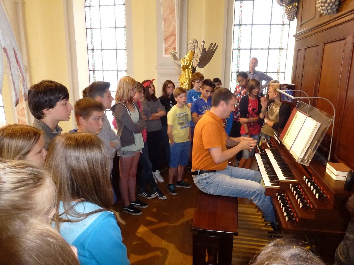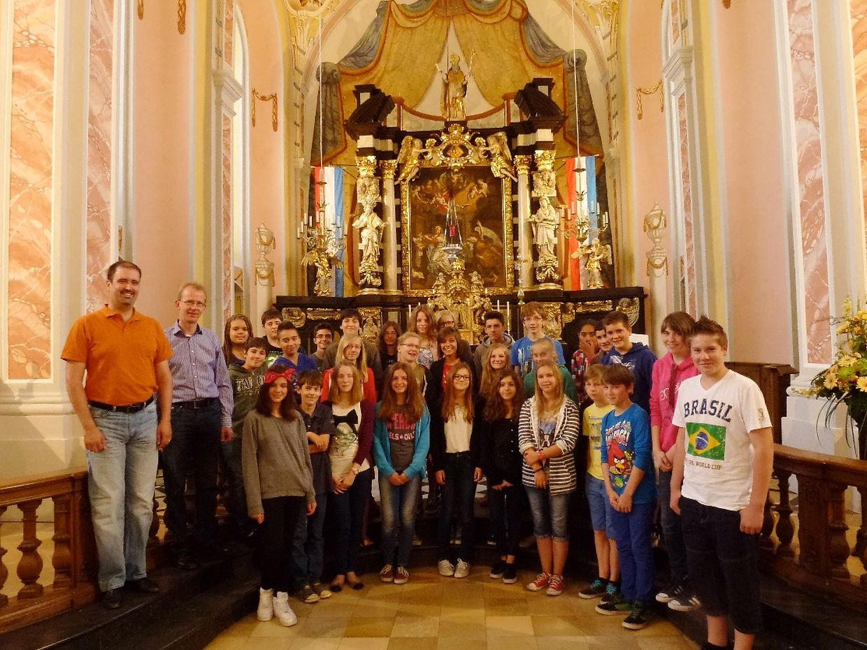 Am vergangenen 24. Juni konnten die Septimaner der Klassen 7O8 und 7O9 aus dem LCD Mersch, begleitet eben von ihrem Musiklehrer Luc Nilles, die fantastische Architektur, sowie die aussergewöhnlichen Malereien und Holzarbeiten der hiesigen Sankt Martinus Kirche bestaunen. Pfarrer Francis Erasmy wusste die jungen Besucher mit seiner eloquenten Sprache und seinen fesselnden Ausführungen in seinen Bann zu ziehen und erreichte, dass trotz der Unmenge an historischen Informationen, es keinem der jungen Zuhörer zu irgendeinem Zeitpunkt langweilig wurde. Alle waren begeistert und bemerkten später fasziniert, wie Pfarrer Francis Erasmy aus einem profunden historischen Wissen schöpft, welches einer nie versiegenden Quelle gleichkommt.