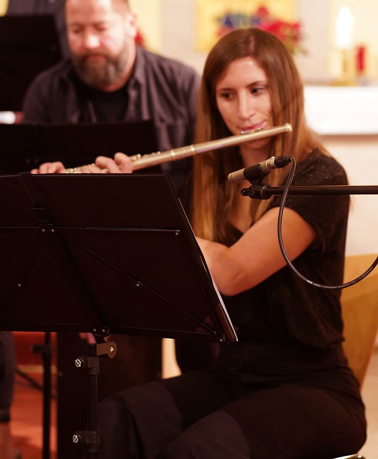 Abwechselnd erklangen bestbekannte Weihnachtsmelodien auf den verschiedensten Instrumenten wie Marimba, Querflöte, Mandoline, Bass, Cajon, Gitarre, Gesang und sorgten für ein abwechslungsreiches, besinnliches Weihnachtskonzert.