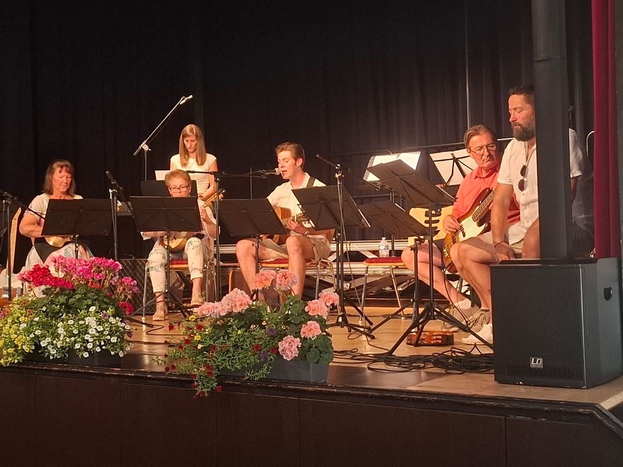 Es war dem Musikensemble Divertimento eine grosse Freude wieder einmal ein Benefizkonzert, diesmal zugunsten von SOS Kannerduerf Lëtzebuerg im Kulturzentrum in Junglinster zu spielen. Mit einem stimmungsvollen Programm wussten die Musiker die zahlreichen Zuhörer im Nu zu begeistern. Abwechselnd erklangen bestbekannte und von der Präsidentin Isabelle Merlevede eigens arrangierte Pop-Hits auf den verschiedensten Instrumenten wie E-Gitarre, Cajon, Querflöte, Keyboard, E-Bass, Mandoline sowie akustische Gitarre und sorgten für gute Stimmung. Viel Applaus erntete der junge Sänger und Gitarrist David Di Bartolo als er mit seiner warmen Stimme unter anderem die Songs Imagine (John Lennon), Massachusetts (Bee Gees), oder Wish You Were Here (Pink Floyd) interpretierte. Für viel Abwechslung sorgten auch die Lënster Ourewiirm, als sie unter der Leitung ihrer Dirigentin Noemie Leer und in musikalischer Begleitung von Divertimento, Songs wie I Have a Dream und Mamma Mia (Abba), Can You Feel The Love Tonight (Elton John) oder Viva La Vida (Coldplay) im Chor sangen. Der Finanzdirektor vom SOS Kannerduerf Robby Jhari, bedankte sich ganz herzlich bei Divertimento und den Lënster Ourewiirm für das wunderschöne Konzert, für die Solidarität mit den Kindern aus dem Kannerduerf und das Interesse diverse musikalische und künstlerische Projekte im Dienste der Kinder zu unterstützen. Präsidentin Isabelle Merlevede bedankte sich ihrerseits ganz herzlich bei den Musikern, Sängern sowie bei Herrn Jhari für den lobenswerten Einsatz zum Wohle der Kinder und beim Publikum für die grosszügige Spende. Divertimento freut sich jetzt schon alle Musikliebhaber zu einem weiteren Benefizkonzert für SOS Kannerduerf Lëtzebuerg am 26.Dezember 2025 um 17 Uhr in der Kirche in Gonderingen einzuladen. Weitere Infos unter www.divertimento.lu oder FB Divertimento Lënster