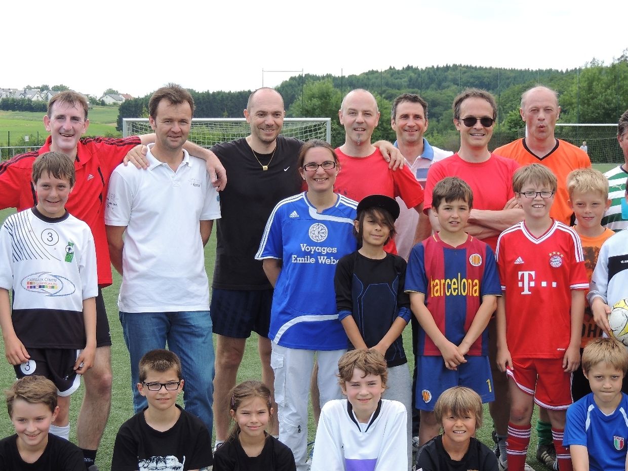 Traditionnel stin di méi "serieux" Matcher Kanner - Elteren um Programm, wou de FairPlay an de Jux grouss geschriwwen gin: Bambinis, Pupilles, Minimes konnten sech géint hir Elteren duerchsetzen, bei de Poussins a Scolaires hun d'Elteren gewonn.