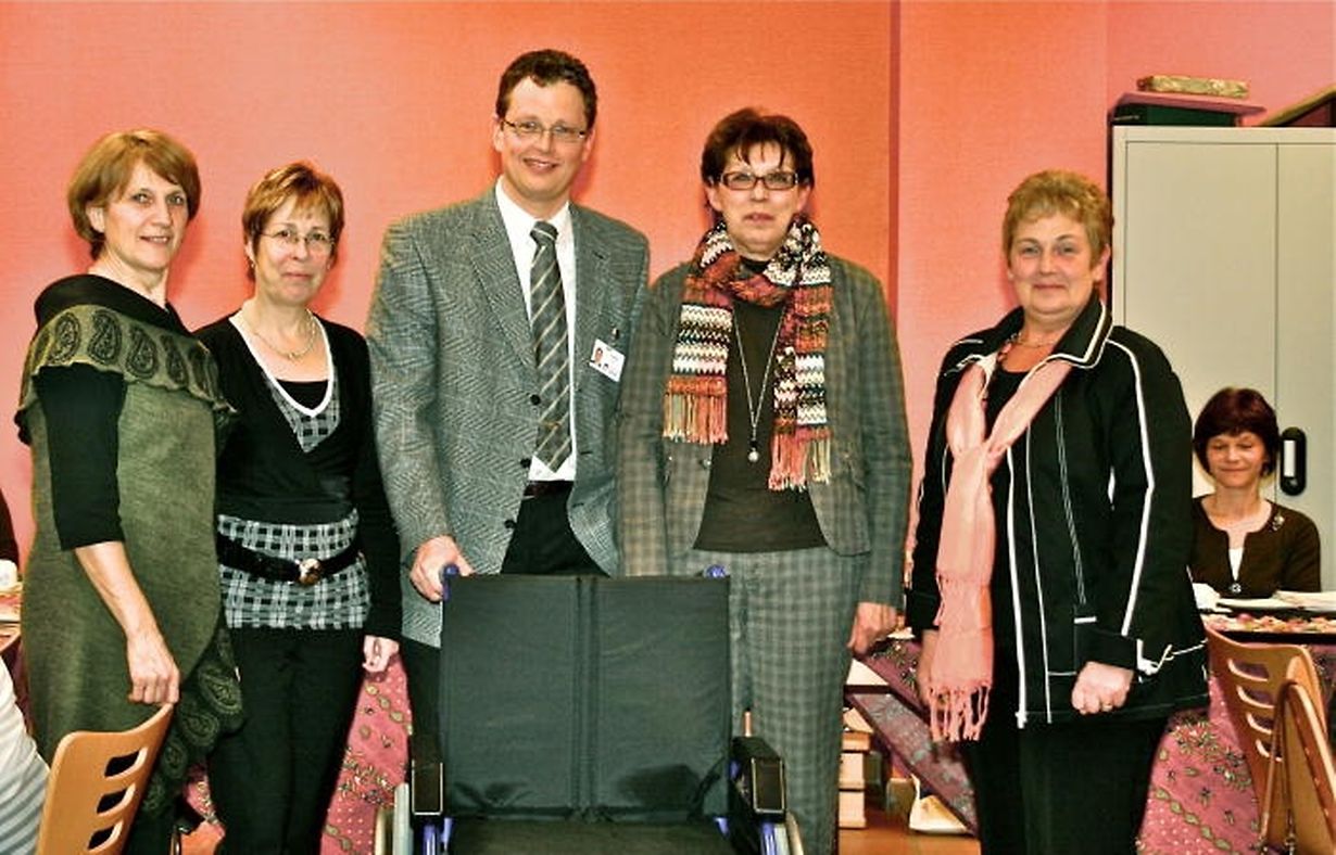 Alsdann überreichte Präsidentin Monique Marmann den Vertretern von „Hëllef doheem“, Liette Kremer, Juliane Schiltz und Harold Jorissen, einen Scheck zum Kauf eines Rollstuhls.