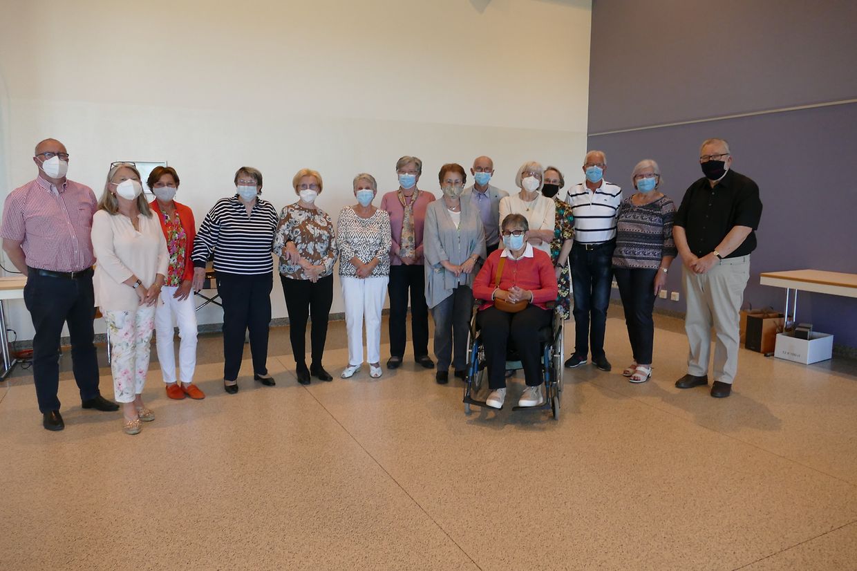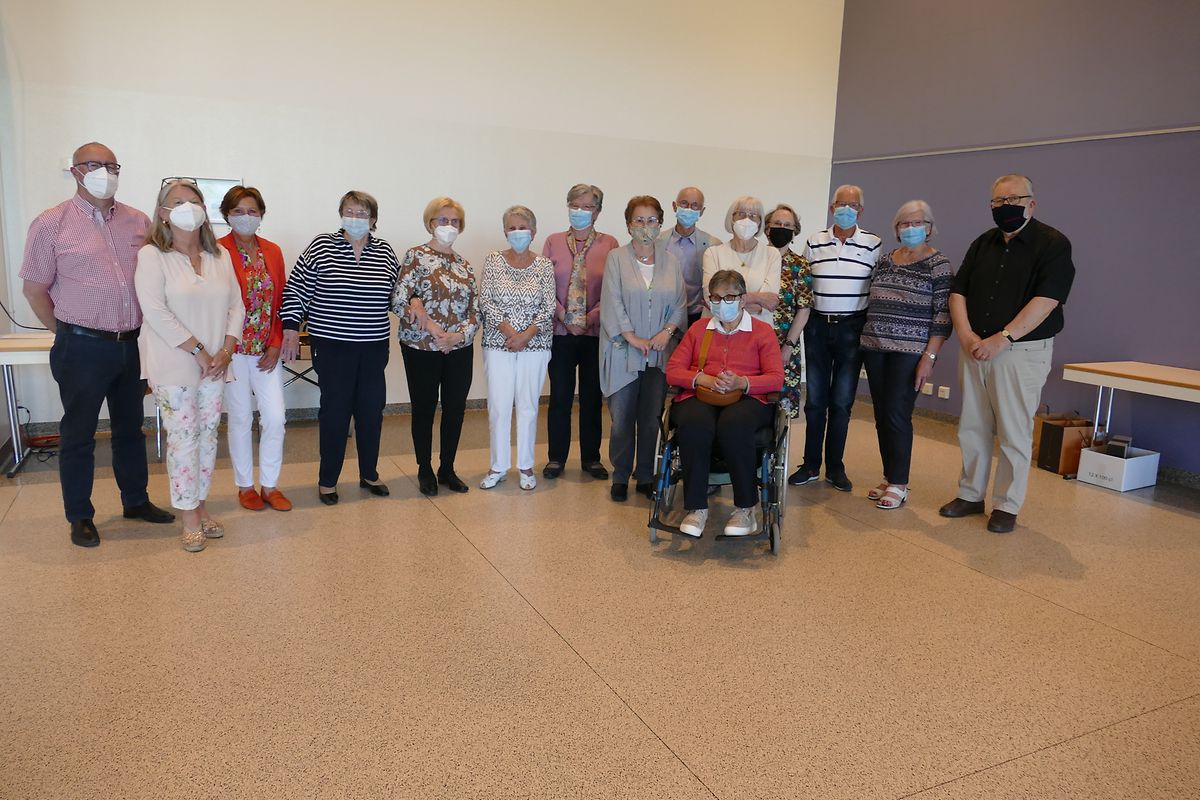 Anschließend ehrte der Vorstand die Mitglieder, die im Laufe dieses Jahres ihren 80. Geburtstag feiern, durch passende Geschenke: Léon Disiviscour, Marianne Freimann-Steichen, Alice Karges-Thommes, Robert Kazmierzak, Josy Lemmer, Lily Muller-Kessel, Christiane Schummers-Haubrich, Jeanny Simon-Petry, Anny Steffen-Thewes, Maisy Thein, Léon Theisen, Annette Wallenborn-Hermann und Juliette Wies-Hilger.