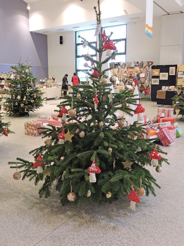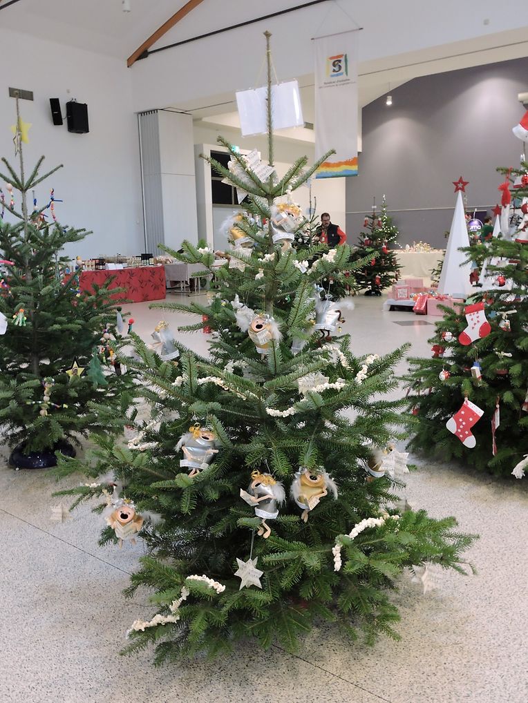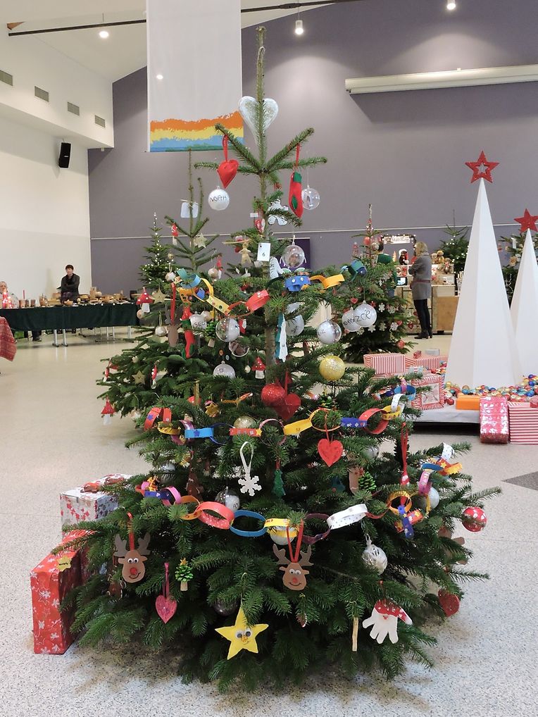 Dëst Joer hate 14 Schoulklassen aus eiser Gemeng hier selwer gerëschte Chrëschtbeemercher ausgestallt.