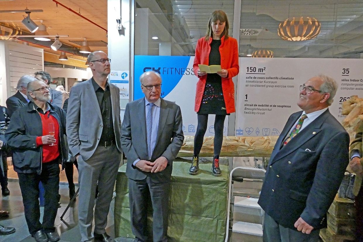 Après les paroles de bienvenue et un rappel de l’historique du projet par Norbert Friob, Claude Frisoni a présenté l’artiste. Elsa vit et travaille à Bargème (France-83). Sculpteur depuis plus de 20 ans, elle travaille principalement l’ardoise à travers des motifs inspirés de la nature. L’orateur a remercié Elsa de faire ressentir aux visiteurs ce que l’art doit à l’ardoise, ce que l’homme doit à l’orme. « Merci à elle de planter ses œuvres dans le terreau de notre imaginaire » Et pour conclure son discours il a posé la question : « Pourquoi est-ce essentiel et non pas accessoire ? » Et Victor Hugo nous donne le réponse : « Un savant fait oublier un savant ; un poète fait oublier un poète. Le relatif est dans la science ; le définitif est dans l’art ! »