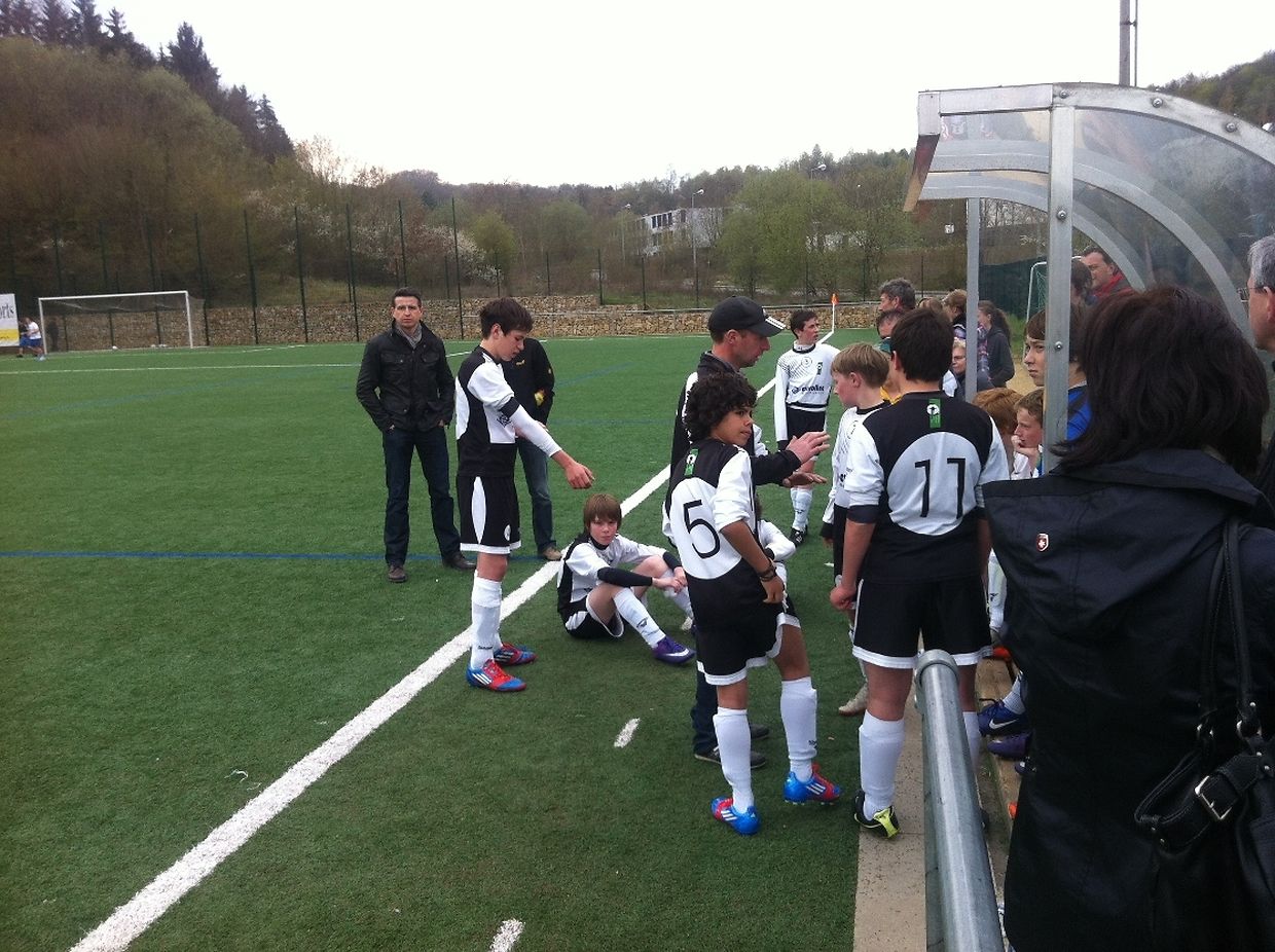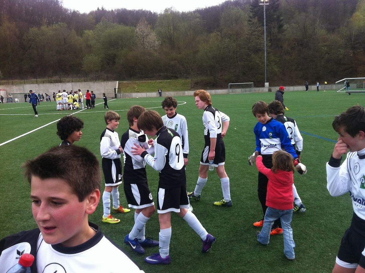 Duerch zwee Diddelénger Goler an der éischter Halschent waren d'Jongen awer net vum Rouleau,mee si hun denen aus dem Minett de Bass gehaal an de Match méi a méi an d'Hand geholl. Eng ganz Rei Elteren waren beim Match derbai fir hir Bouwen unzefeieren.