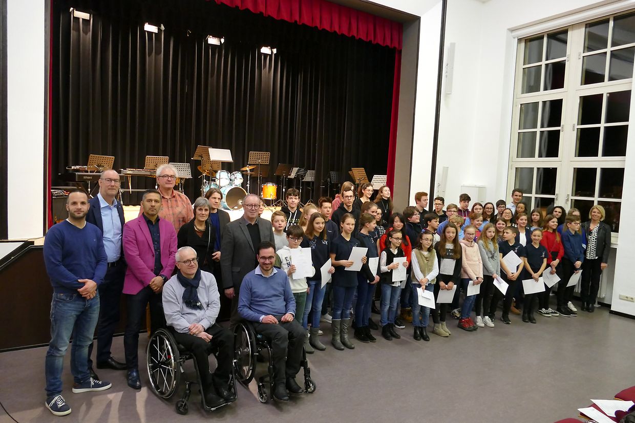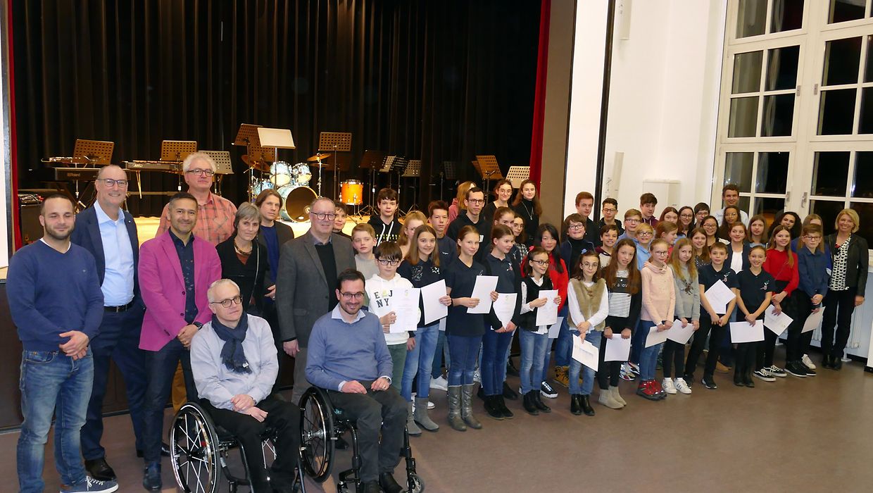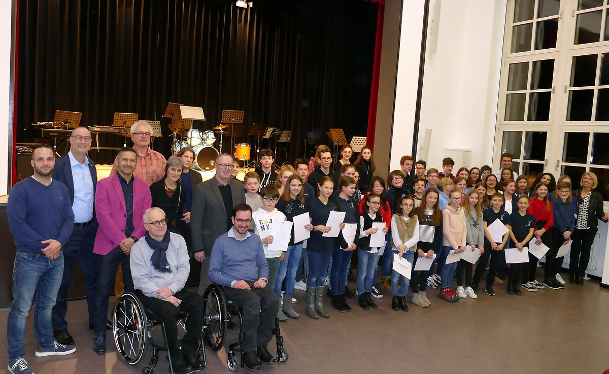 Zahlreich waren die Laureaten angetreten, um ihr Diplom nebst Briefumschlag mit einem Gutschein für didaktisches Material in Empfang zu nehmen. Mehr als 300 Schülerinnen und Schüler der Gemeinde Junglinster besuchen die Musikschule Echternach sowie das Konservatorium der Stadt Luxemburg, wo sie in verschiedenen Instrumentenarten sowie in Harmonie, Gesang, Kammermusik und Tanz eine Ausbildung erhalten. 3.000 Euro stellte die Gemeinde als Belohnung für die Laureaten zur Verfügung, die von Bürgermeister Romain Reitz und den Schöffen Gilles Baum und Françoise Hetto-Gaasch überreicht wurden.