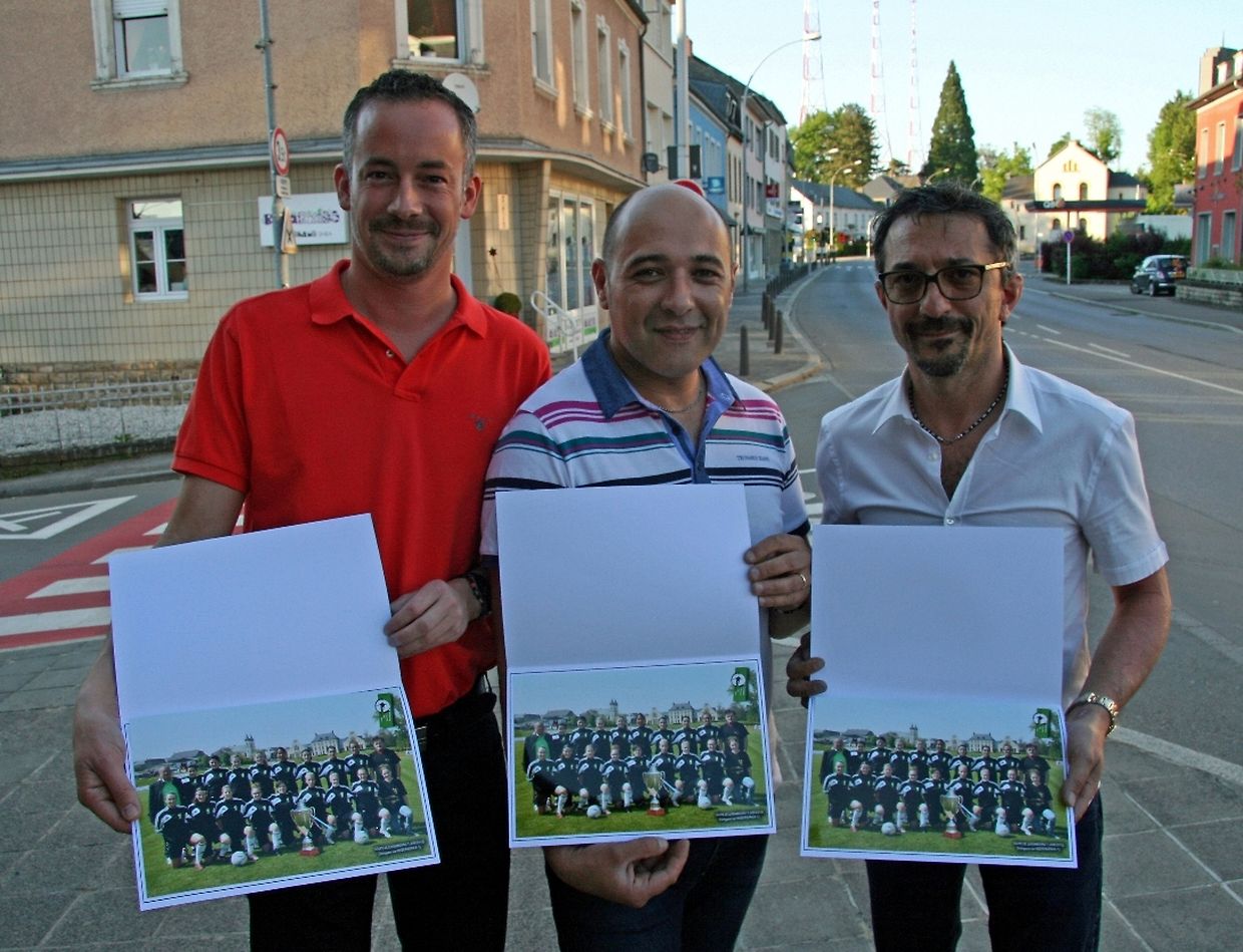 Kierzlech hunn déi zwéi Cheffe vum Restaurant Veranda 2 vu Lënster, den Alessandro de Marco an den Sergio Aires, nei Jogging-Kostümen un d'Dammenéquipe vum F.C. Jeunesse Jonglënster iwwerrécht.