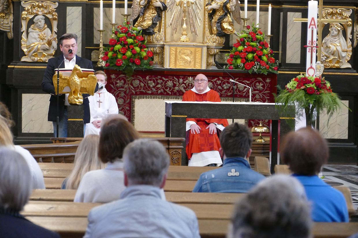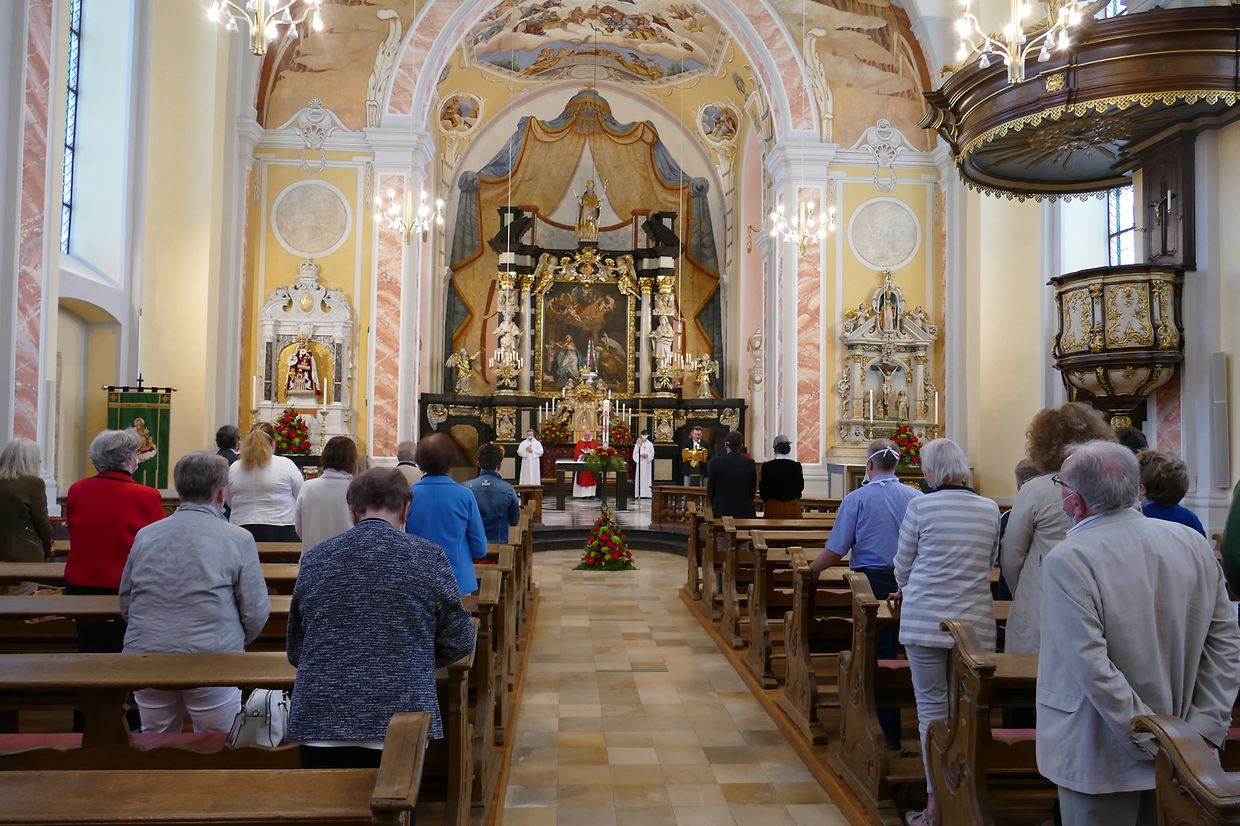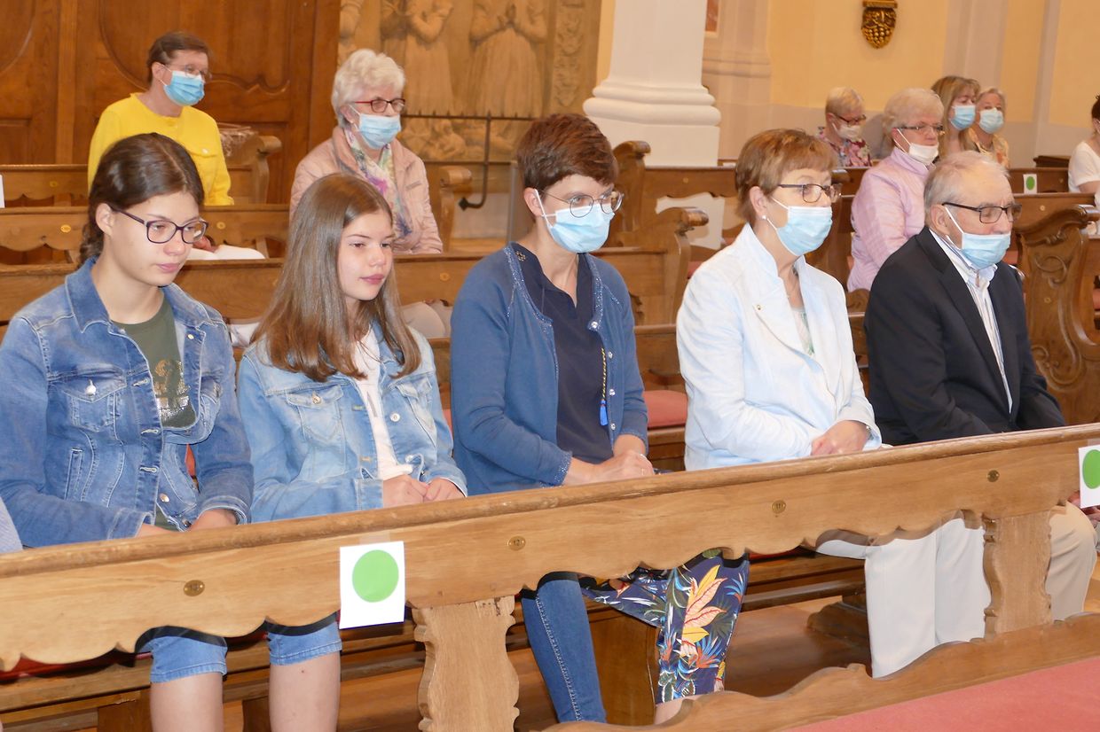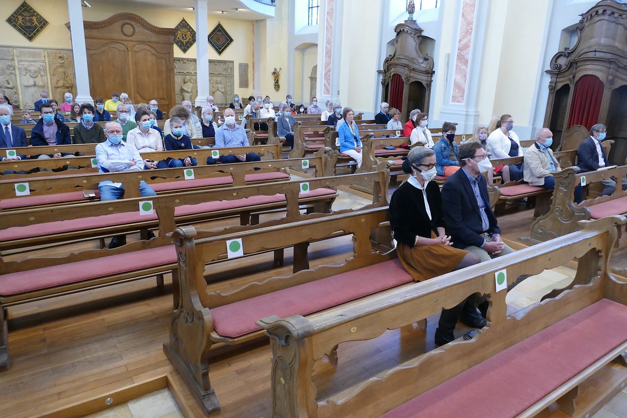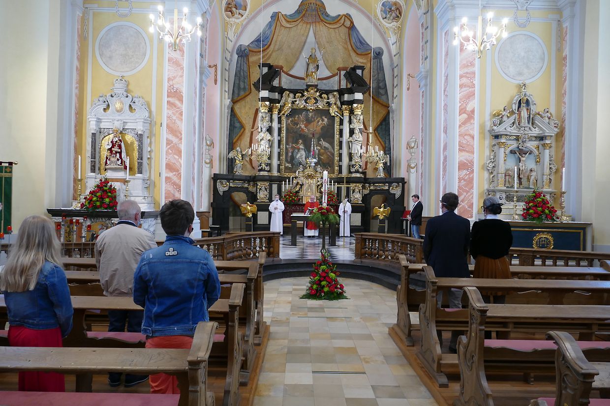 Päischtsonndeg huet de Paschtouer Nico Jans d'Mass an der schéiner Barockkierch zu Jonglënster gehalen. De Kantor Luc Nilles an den Organist Laurent Felten hunn déi sëllege Leit, déi do waren, agelueden, matzesangen. Et huet ee gespuert, datt d'Leit richteg frou waren, datt si erëm an d'Kierch konnte goen; si hu betount, datt ouni Sonndesmass et kee richtege Sonndeg gëtt, a scho guer kee Päischtfest.