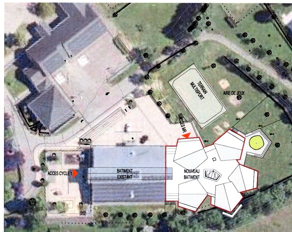 •den APD, also ‚Avant-Projet Détaillé‘ vun der Vergréisserung vun der Maison relais a Cycle C1 / Terrain fir d’Schoulinfrastrukturen an der Buerg.