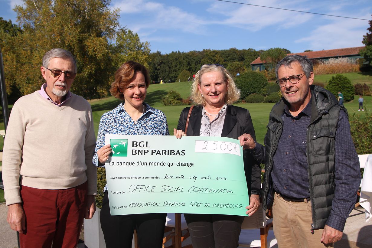 Grâce à la participation d’une centaine de golfeurs, un chèque d’une valeur de 2.500 euros a été remis à l’Office Social Echternach-Rosport-Mompach en faveur des sinistrés des inondations survenues dans la région au mois de juillet.
