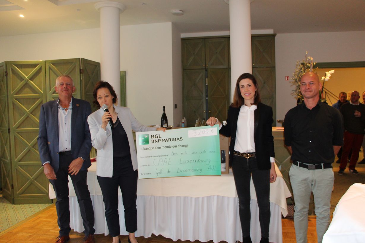 Grâce à la participation d’une centaine de golfeurs, un chèque d’une valeur de 3.200 euros a été remis à CARE Luxembourg pour venir en aide aux personnes victimes du grave tremblement de terre survenu au Maroc. Ce chèque a été majoré par le bureau d'assurances CROISE S.A. de Diekirch pour la somme de 2.500 euros.