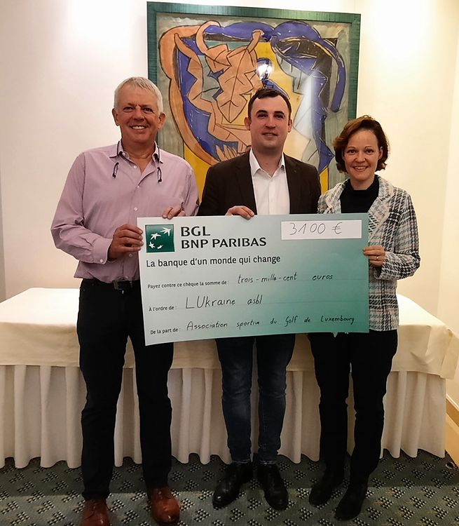 Grâce à la participation d’une centaine de golfeurs, un chèque d’une valeur de 3.100 euros a été remis à LUkraine asbl. Cette association créée par des Ukrainiens vivant au Luxembourg apporte un soutien et une aide humanitaire aux citoyens ukrainiens, tant au Luxembourg que directement en Ukraine.