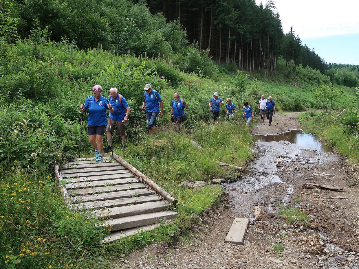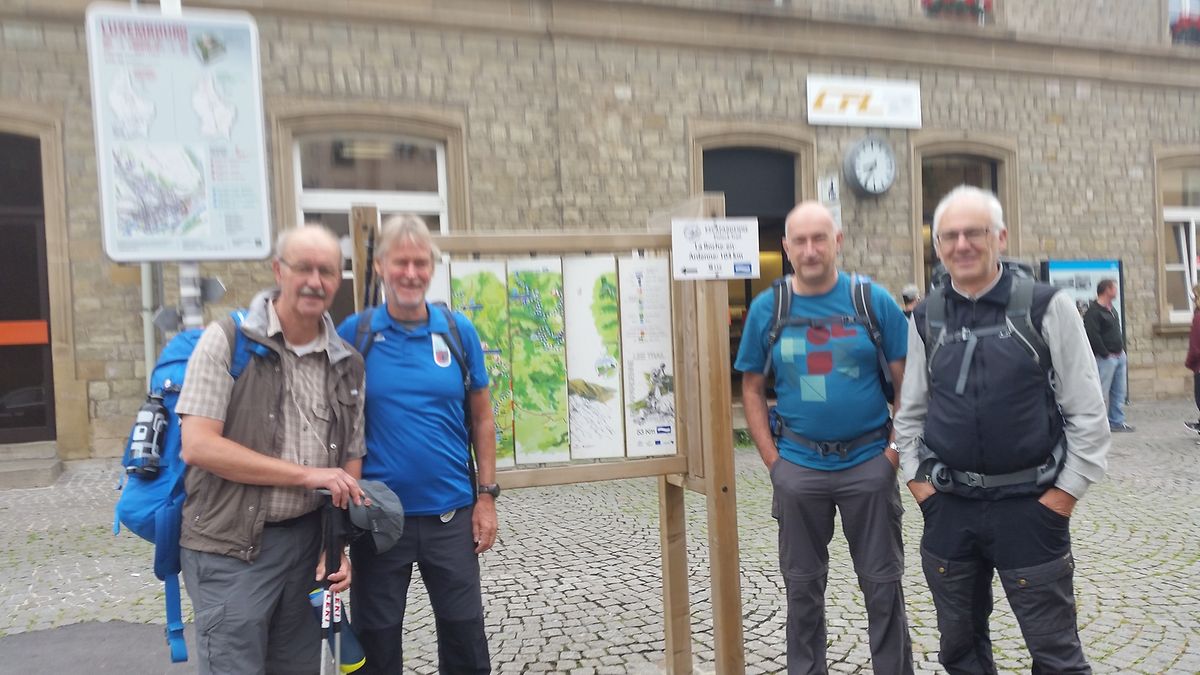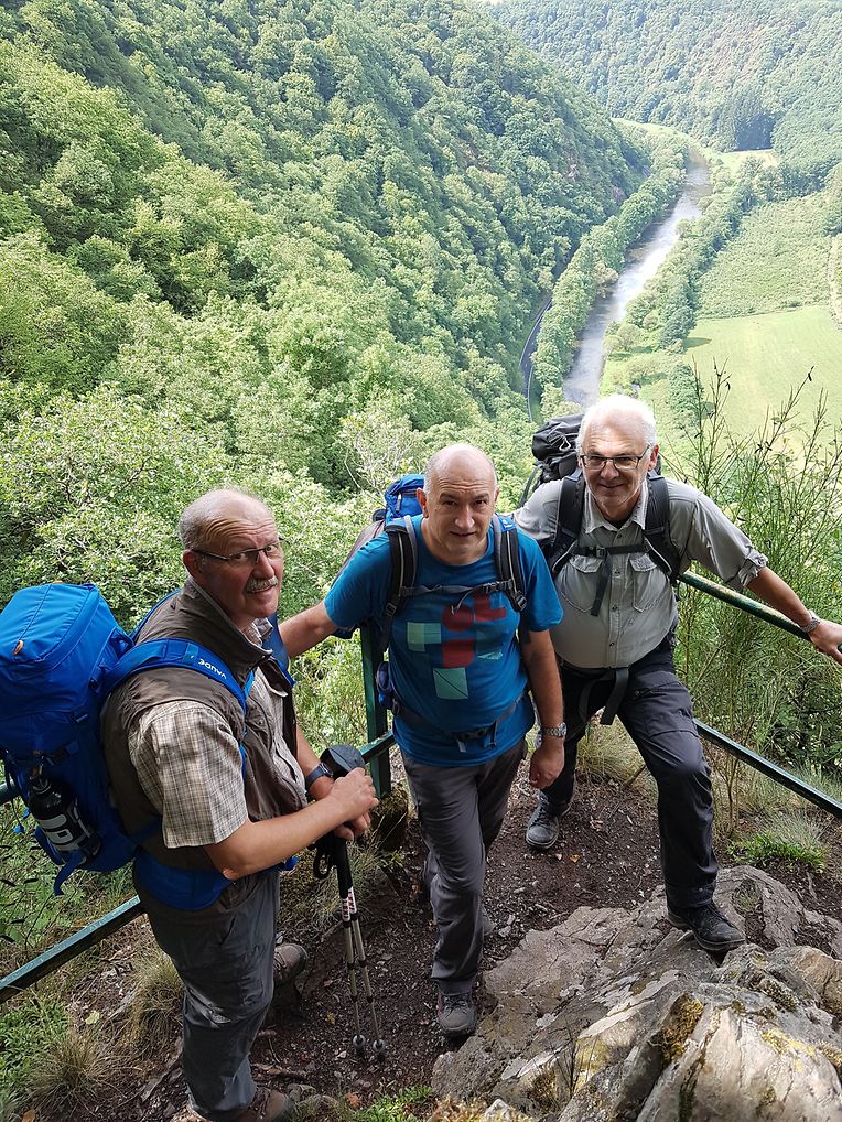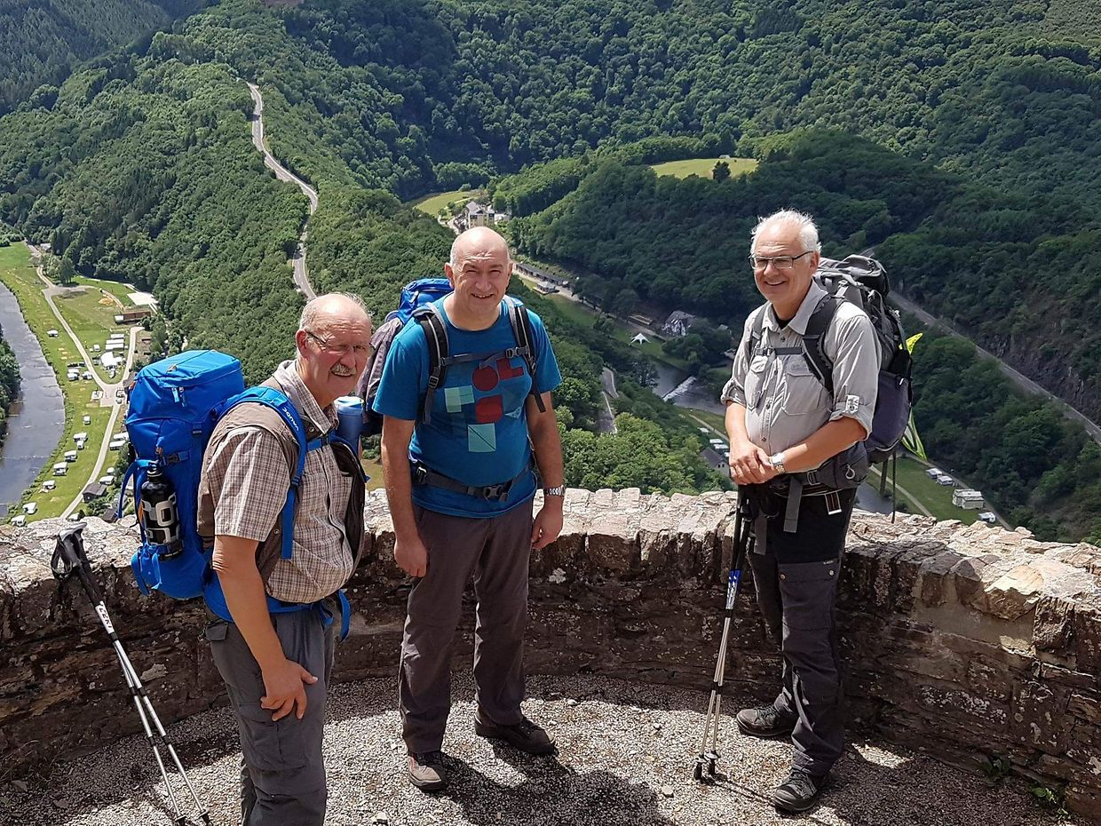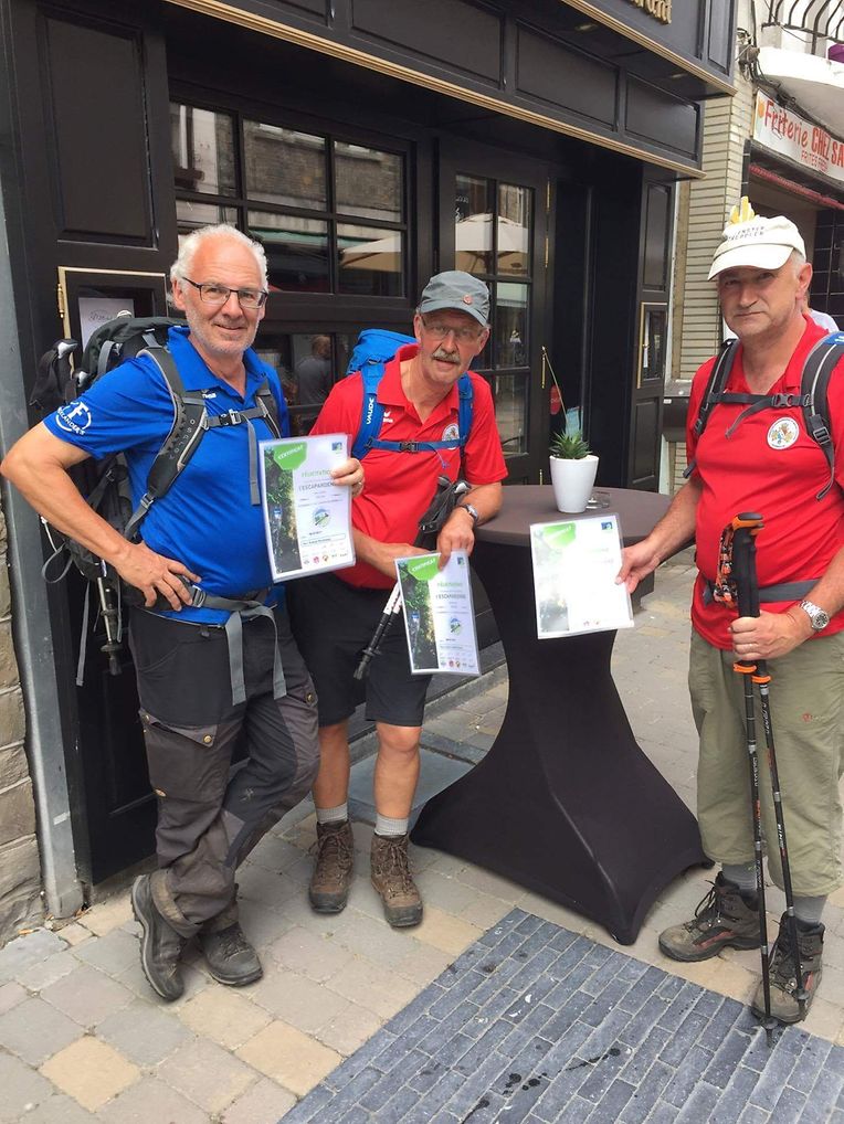 Den Escapardenne des Ardennes, Luxemburgs zweiten «Leading Quality Trails- Best of Europe » Wanderweg zu entdecken war das Ziel der Lënster Trëppler die sich am 3.8. von Ettelbruck aus auf den Weg machten. In 6 Etappen und nach 159 km erreichten Romain, Jean-Claude und Heng ihr Ziel in La Roche-en-Ardenne, nicht ohne aber von Ihren Vereinsfreunden die letzten 10km begleitet zu werden. Erlebt wurde ein bestens markierter Wanderweg, Pfade quer durch Wälder, Wiesen und Felder, sehr wenig Asphaltwege und sehr viele Höhenmeter. Ein dem Wanderer viel abverlangender Weg wurde erkundet, die Freude über das pure Naturerlebnis , und das in unmittelbarer Nachbarschaft, aber überwiegt und überzeugt. Nachahmer sind denn auch schon, in Form einer Wandergruppe der FLMP, am darauffolgenden Samstag, dies mit Wanderführer und Gepäcktransport, gestartet.