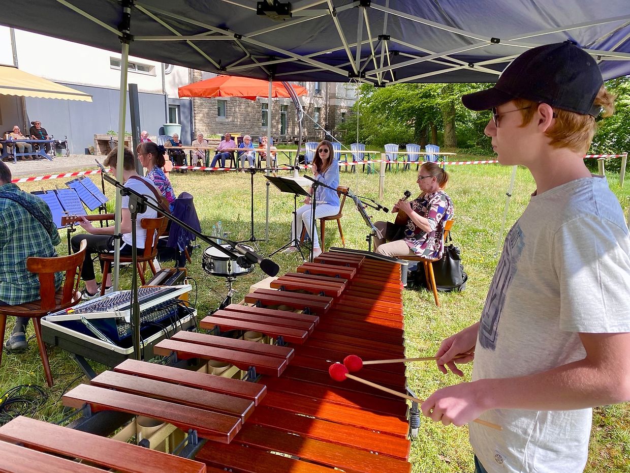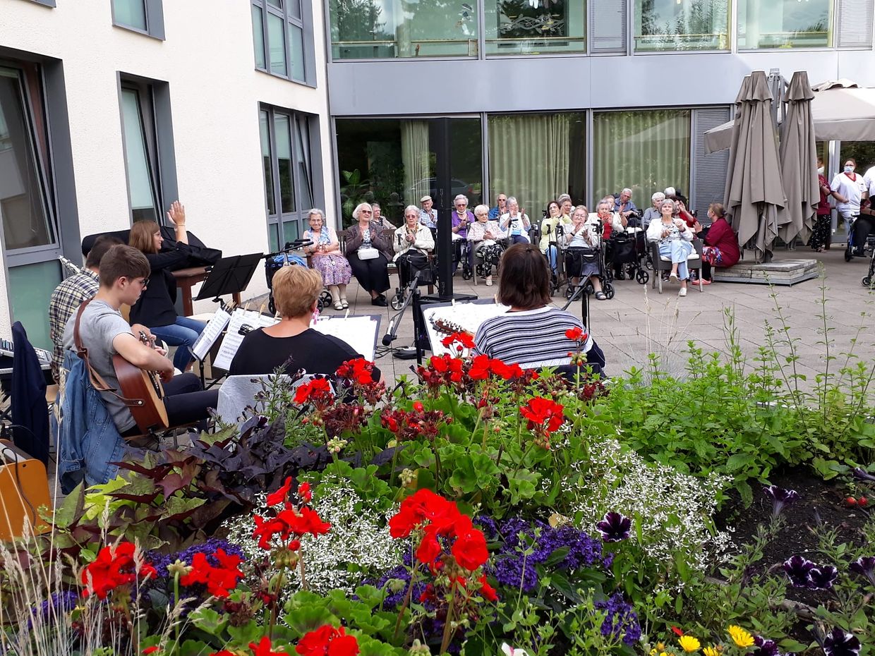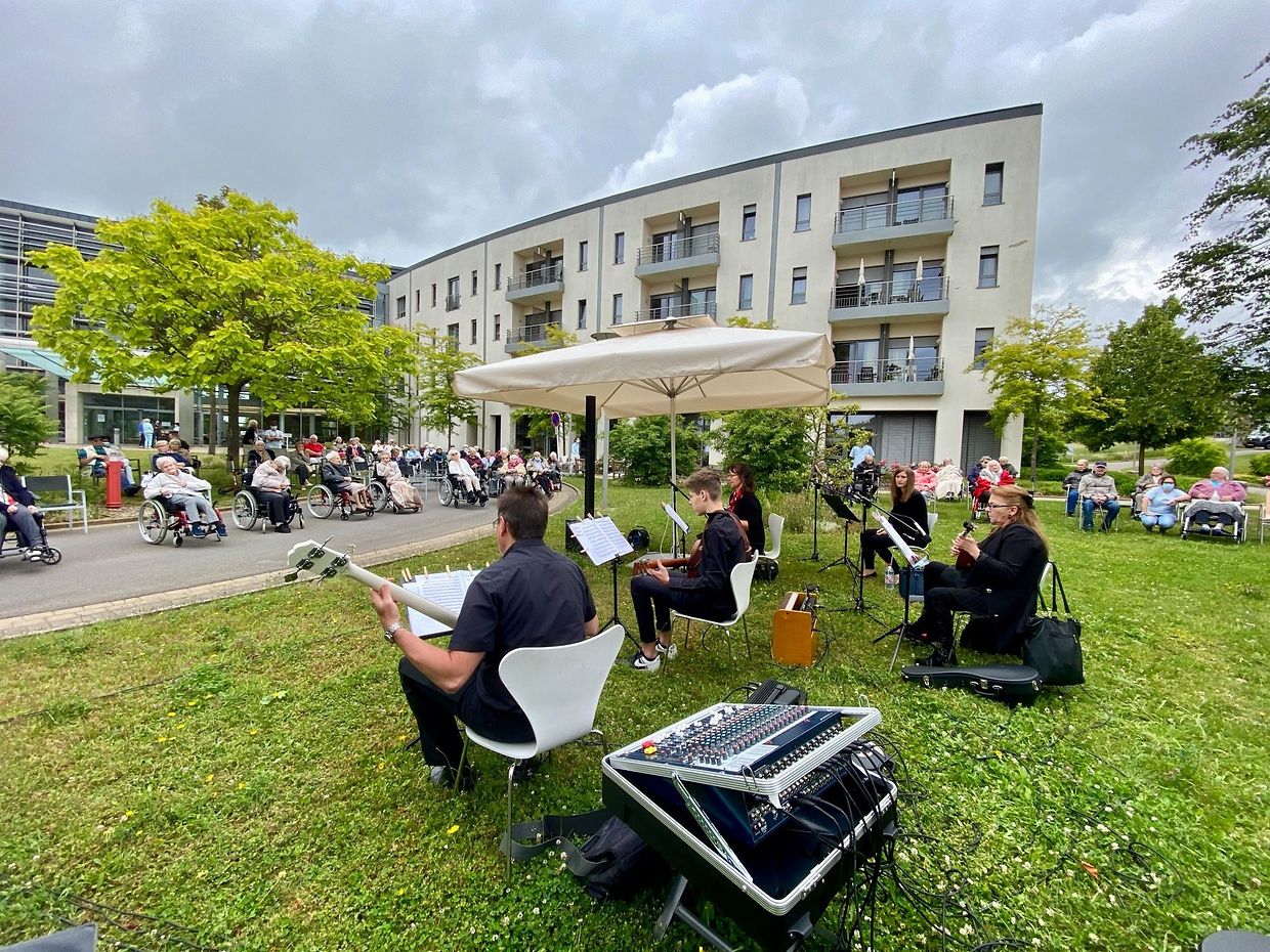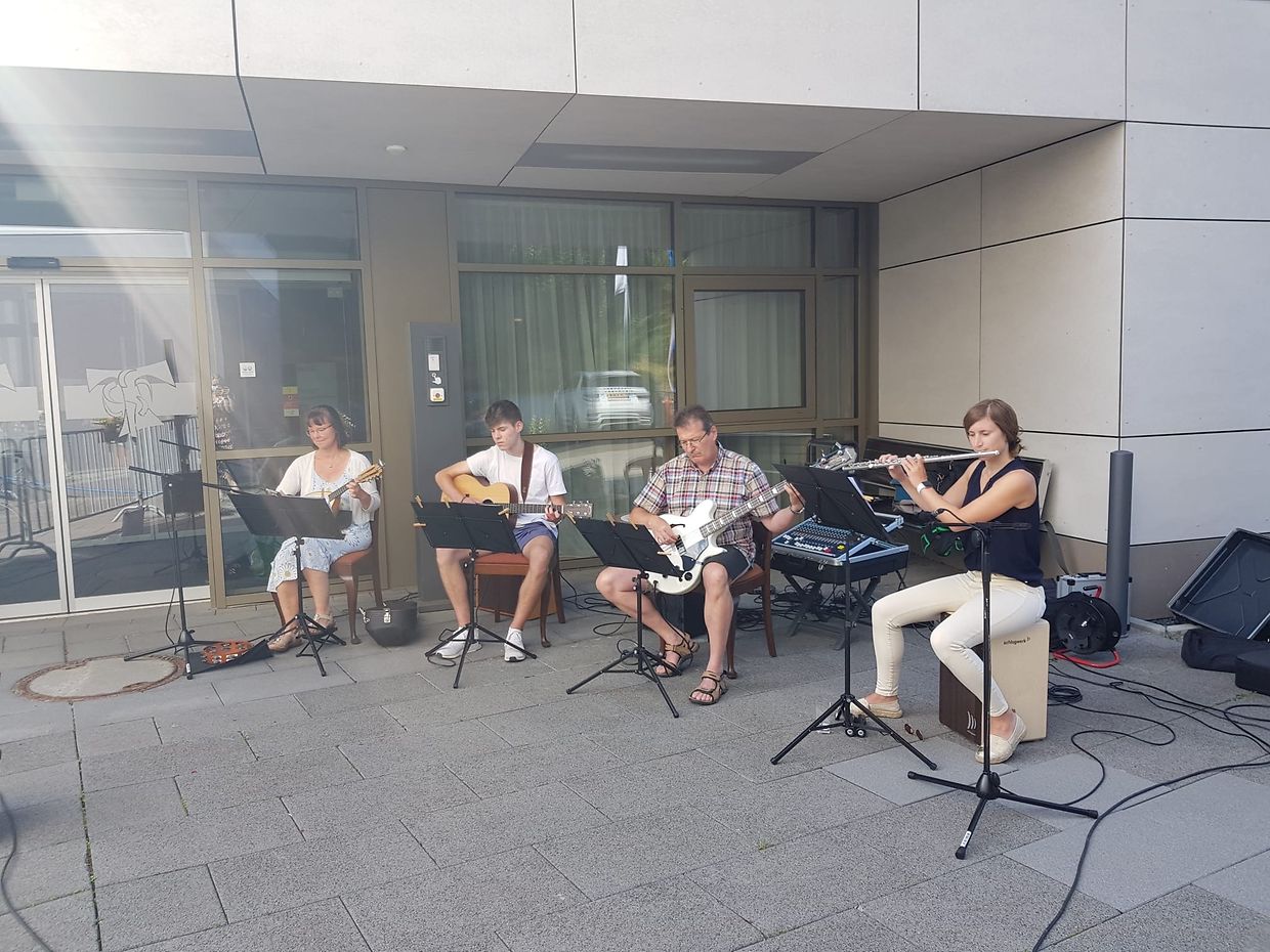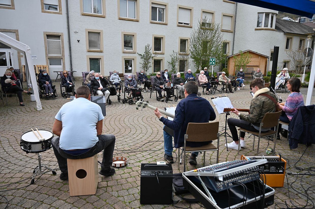 Dem Musikensemble Divertimento lag es am Herzen den Bewohnern der Altersheime während der Pandemie eine kleine Freude zu bereiten. Nicht weniger als 40 Konzerte standen auf dem Programm. Quer durchs Land sind die Musiker gereist, um die Senioren mit bestbekannten Melodien gespielt auf Mandoline, Gitarre, Bass, Xylophon, Querflöte und Cajon, ein wenig aufzumuntern. Die warmen harmonischen Klänge wussten die Herzen der Zuhörer im Nu zu erobern und erweckten schöne Erinnerungen aus vergangenen Zeiten. Ob Innenhof, Wiese, Parkplatz oder Gartenanlage, von überall her drangen die bekannten Popsongs wie "Perfect", "Hallelujah", "Sweet Caroline", "Bella Ciao", "Chiquitita", "The Sound of Silence" durch offene Fenster bis zu den Einwohnern. Diese verabschiedeten sich jedes Mal von den Musikern mit klatschenden winkenden Händen, leuchtenden Augen und dankbaren Worten. Als bei einem der letzten Auftritte in der Pandemie eine ältere Dame der Präsidentin Isabelle Merlevede erzählte, jetzt habe Sie wieder Lust zu leben nach diesem wunderschönen Konzert, da wussten die Musiker von Divertimento, dass es sinnvoll und richtig war, während der Pandemie viele bunte musikalische Blumensträusse an die Senioren zu verschenken.