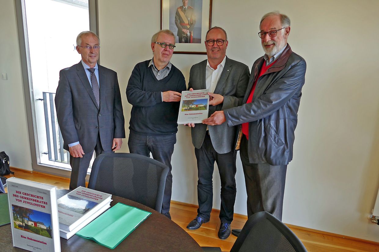 Haut de Muergen hunn déi zwéin Auteure René Link a Francis Dahm hiert neit Buch "Die Geschichte des Gemeinderates von Junglinster", vu 1796 un, am Sëtzungssall vun der Gemeng virgestallt. Derbäi waren de Buergermeeschter Romain Reitz an de Schäffe John Breden esowéi de jetzeg Membere vum Gemengerot, déi fréier Memberere vum Schäffen- a Gemengerot an och de fréier a jetzeg Beamte vun der Gemeng.