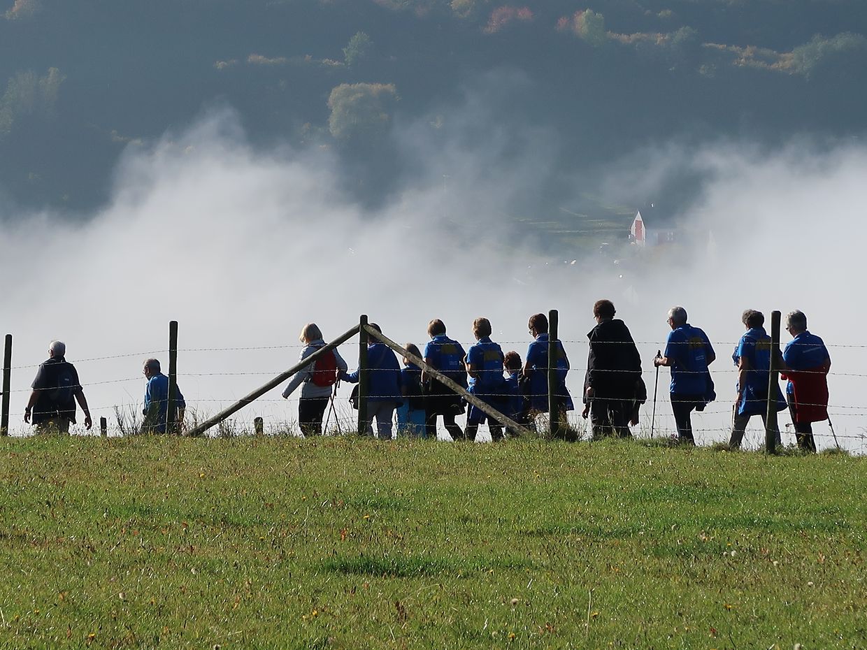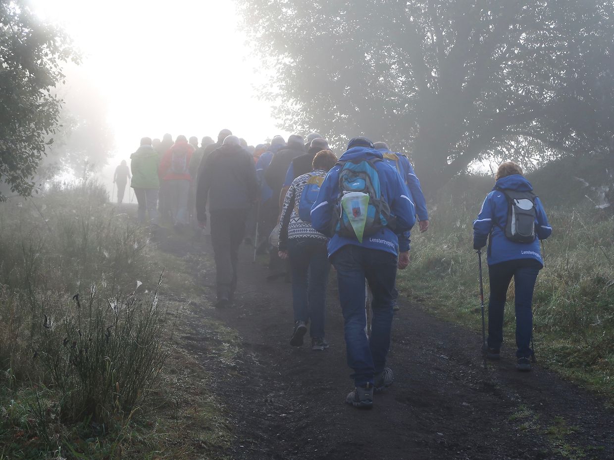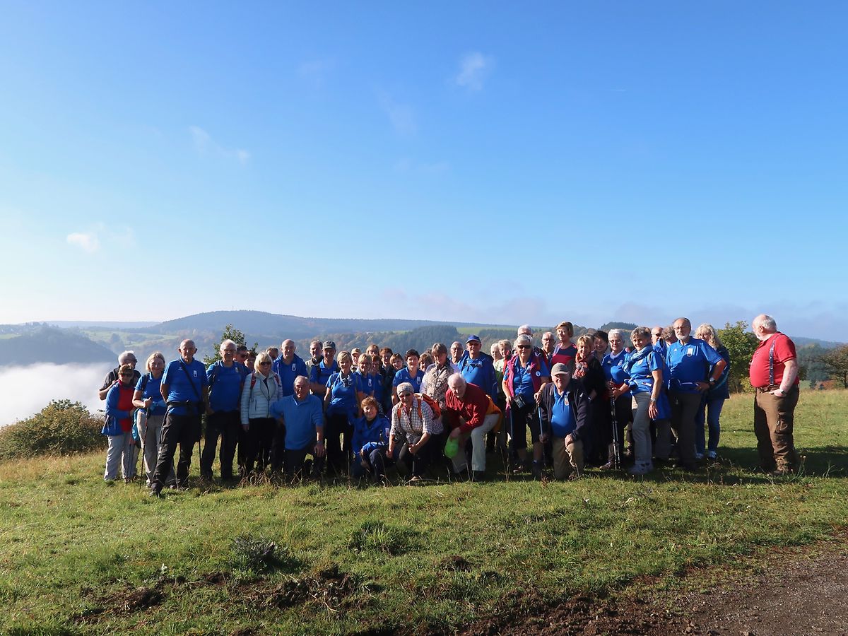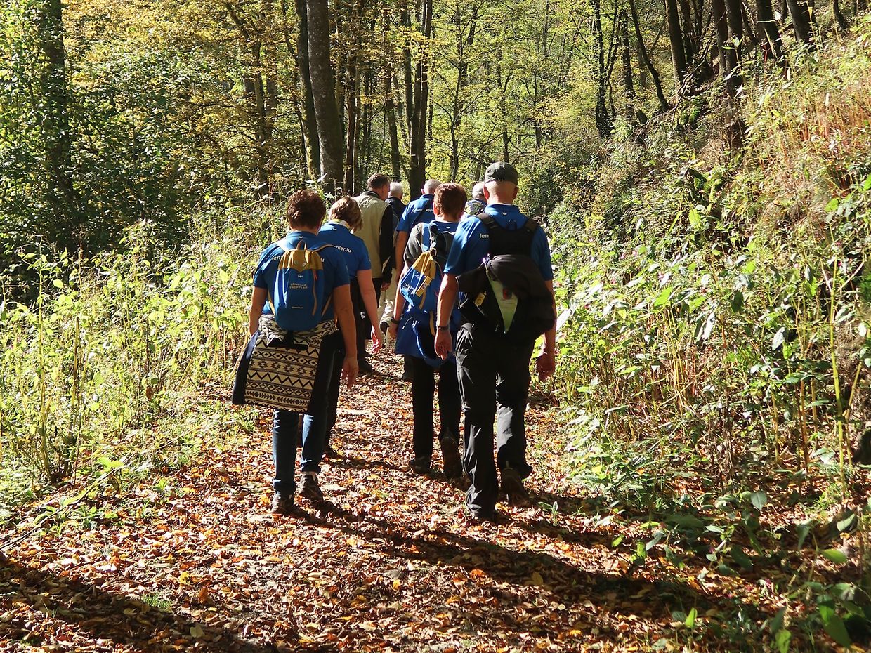 Die > LËNSTER TRËPPLER haben kürzlich der Junglinster Partnerstadt in der Eifel, Üdersdorf einen Wanderbesuch abgestattet. Zusammen mit den Wanderfreunden des Eifelvereins ging es im morgendlichen Nebel los um auf eine Höhe von 515m zu wandern und den "Landesblick" zu erkunden. Hier servierte der Eifelverein denn auch eine vorzügliche Stärkung und nach einer Rast führte der Weg weiter durch wunderschön herbstlich gefärbte Wälder, entlang der Meerfelder Maare. Später wurde auf der Sonnenterasse der Heidsmühle ein reichliches Mittagsmenu genossen.