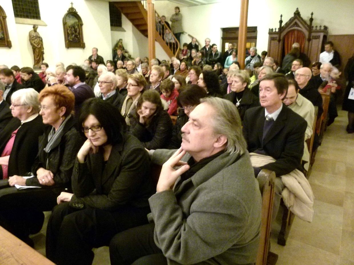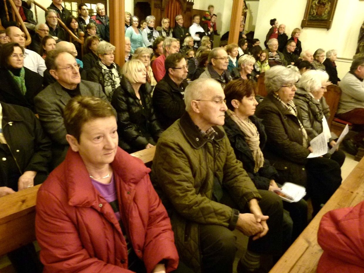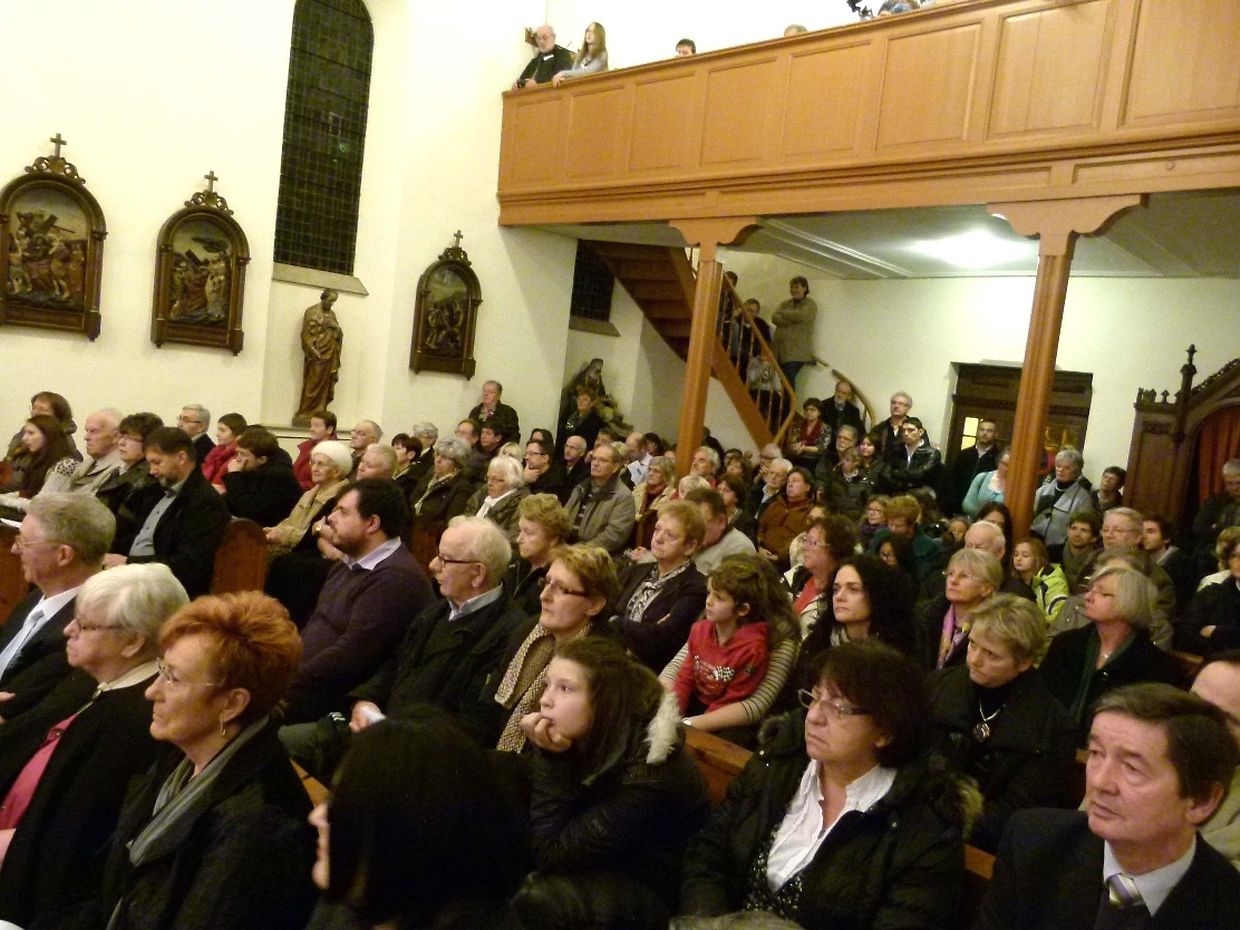 Déi Guedber Kierch war strubbelvoll Leit, wéi d’Presidentin Isabelle Merlevede (La Lyre) an de President Jeannot Clement (Lidderfrënn) déi vill Frënn vu Musek a Gesank begréisst hunn, ënnert hinnen de Paschtouer Francis Erasmy an d’Buergermeeschtesch Francine Colling-Kahn.