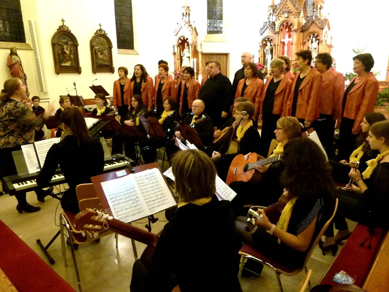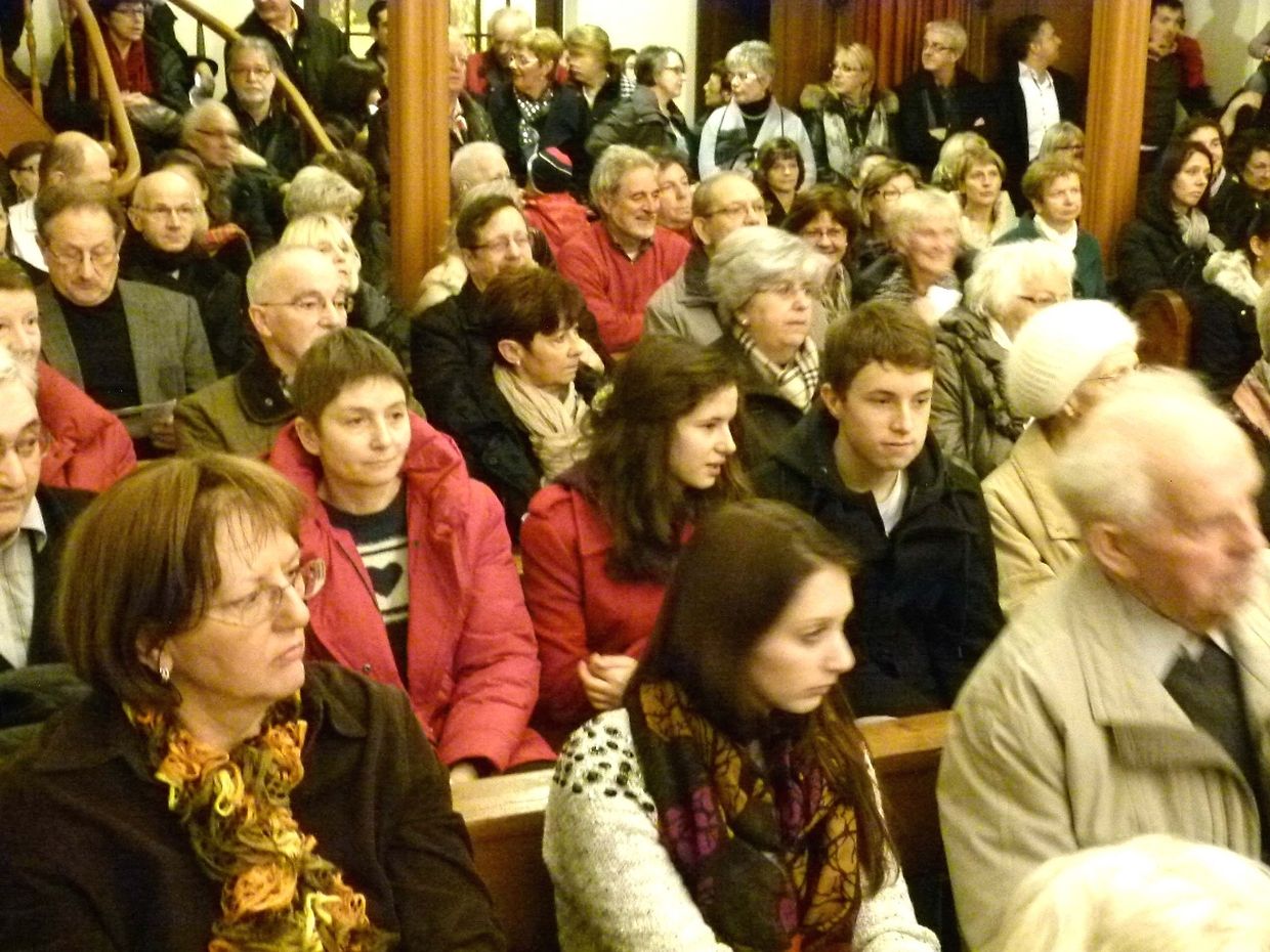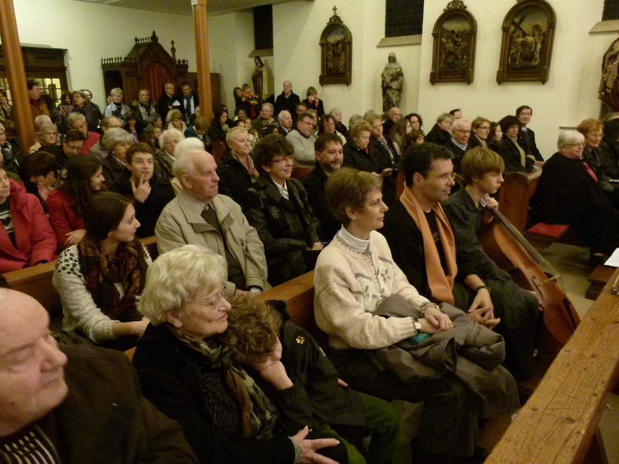 Déi Guedber Kierch war strubbelvoll Leit, wéi d’Presidentin Isabelle Merlevede (La Lyre) an de President Jeannot Clement (Lidderfrënn) déi vill Frënn vu Musek a Gesank begréisst hunn, ënnert hinnen de Paschtouer Francis Erasmy an d’Buergermeeschtesch Francine Colling-Kahn.