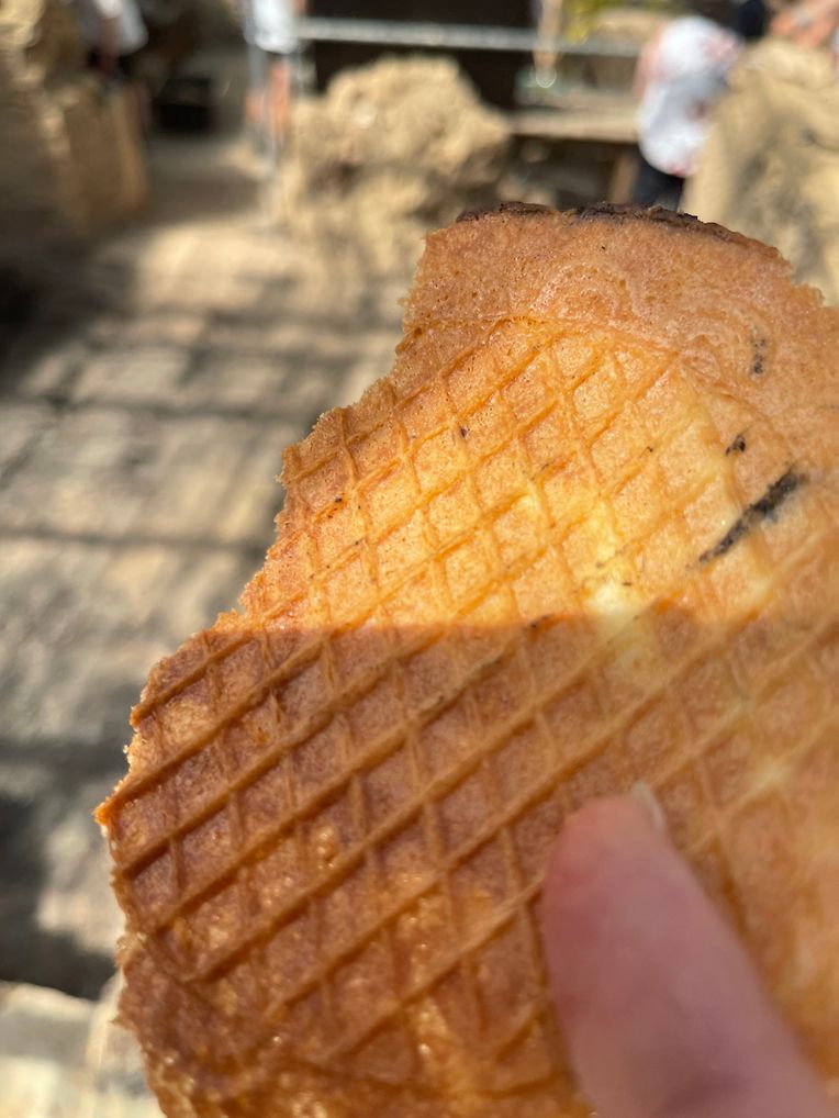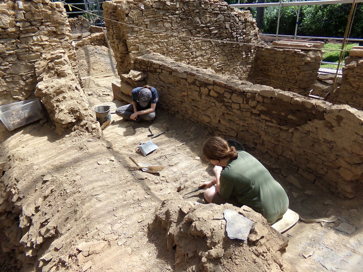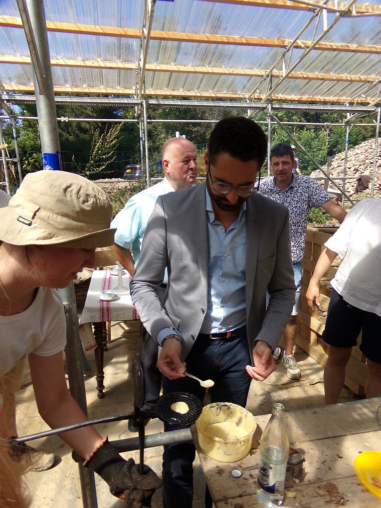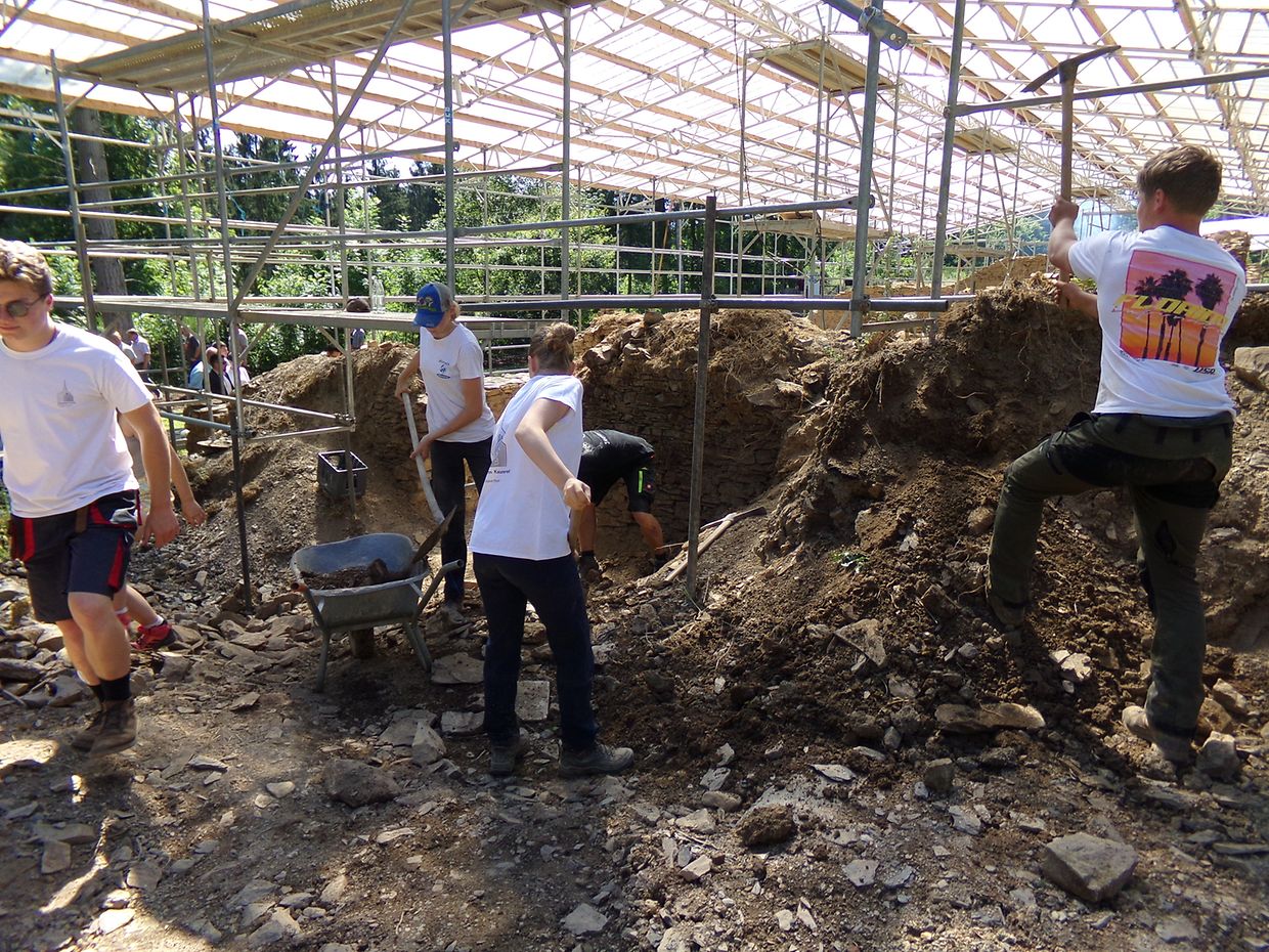 Duerno goung ët an d'Kapell, wou d'Madame Elisabeth Koltz vum INPA déi fachlech Erläuterunge ginn hott. Fir di nächst Etapp goung ët erof bei den Erklärpanneau vum ale Guttshaff. Den André Kirsch, Archeolog bei de Gruewungen, weist unhand vun den ale Fotoen vu 1936 wéi den Haff ausgesinn hott ier en ofgebrannt ass. Den Här Foni Lebrun, Direkter vum INRA, hott de laangjäregen Engagement vum Ministere um Përmeshaff betount. Als klenge clin d'oeil huet hien erzielt, datt hien well als Kand mat sengen Elteren op de Knupp koum obwuel Sie néck aus der Géigend stamen. Uschléissend gi mer erof an d'Ruinen wou eis Studenten equipe mat gruewen amgang ass. An denen eenzelne Reim gin d'Entdeckunge vun de Gruewungen erkläert. An der Kichen hunn d'Meedercher aus eisem Schaffertegrupp Wäffelchersdeeg preparéiert. Den Erik Thill däerf dann och selwer eng Wäffelchen an d'gossen Eise maachen déi dann am Bakuewen gebak gëtt.