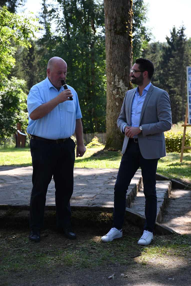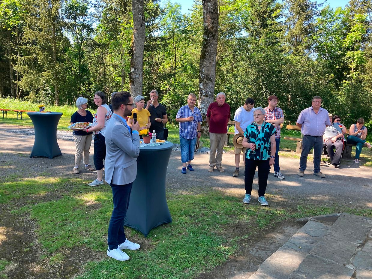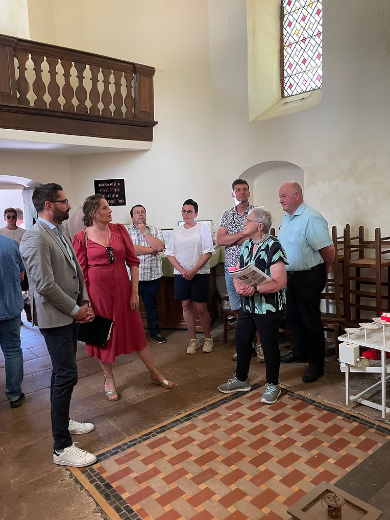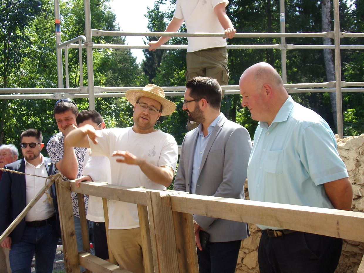 Zeréck op der Plaz virun der Kapell seet de Minister sech iwwerrascht iwwer d'Vilfalt déi een hei um Përmesknupp op esou enkem Raum virfënnt. Hien seet hien géif mat senger Equipe am Ministère kucken wat kann fir eng weider Ënnerstëtzung vun de Gruewungen, eng Ofsécherung an ewer och d'touristisch Accessibilitéit vun der Ruin gemaach ginn. D’Përmesfrënn iwwerreechen dem Minister, als Merci fir de Besuch, e klenge Kierfgen aus dem Naturpark.